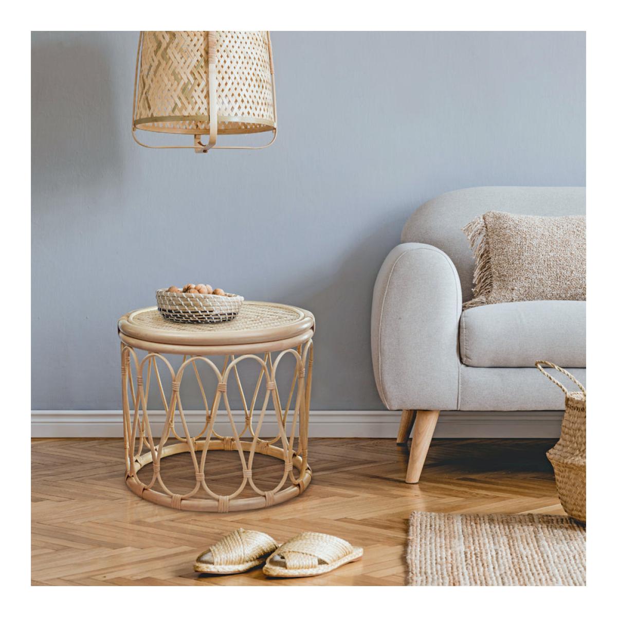 This side table made in rattan, is a stunning natural colour and would complement any living room,serving purposes as both a side table and a lamp table. The carefully and uniquely designed tablewould add a touch of class to your living room.