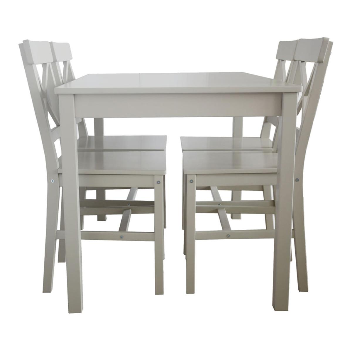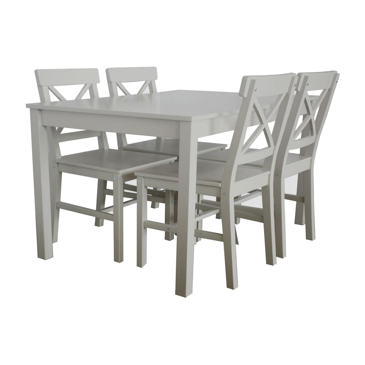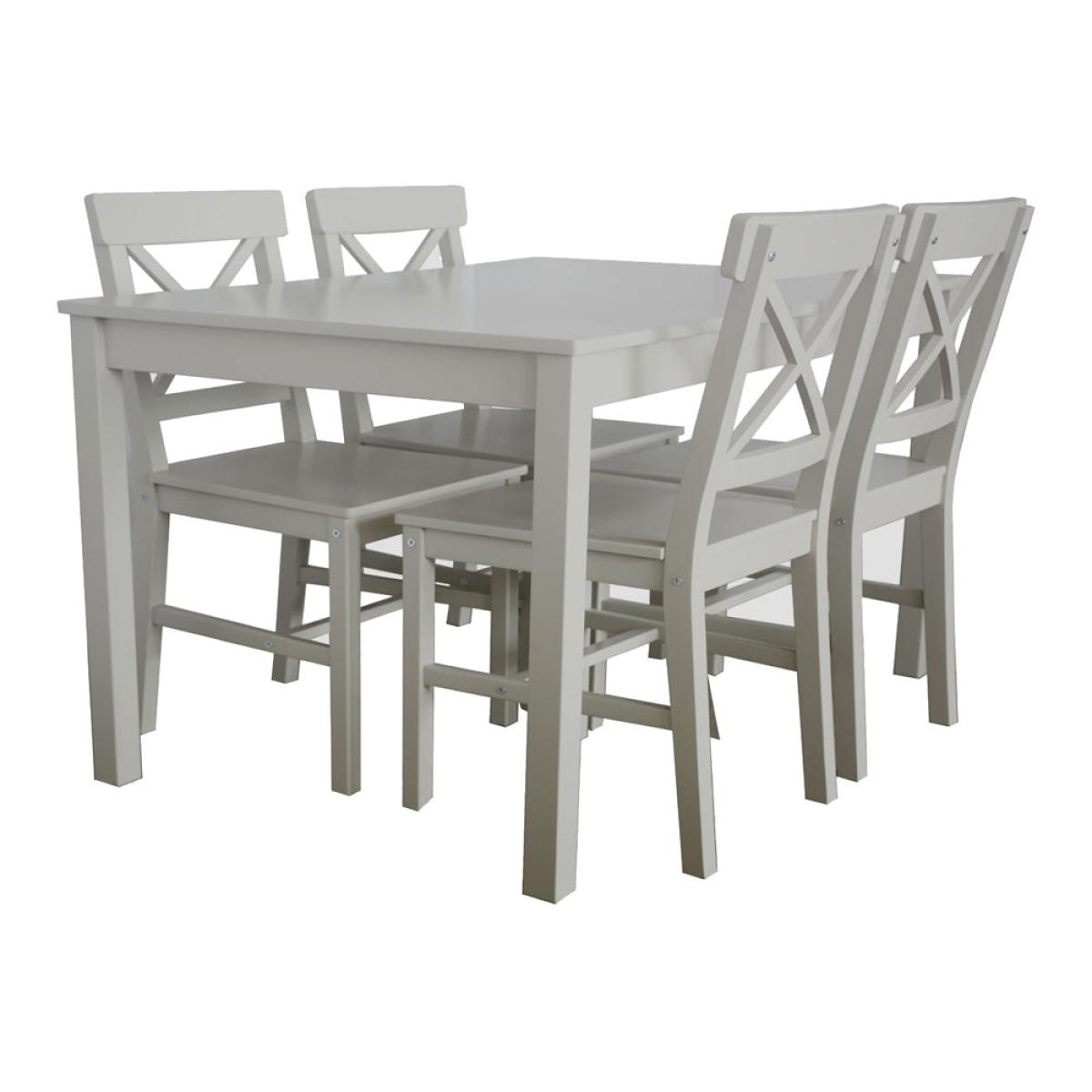 Beautifully finished, and crafted from enduringly popular solid wood, the Teddy's Collection Malaren 4-seater dining set will be a superb addition to any eating area or dining space. Comprising a table and four impeccably constructed chairs, this dining set is perfect for informal dining or compact homes. The chairs are robust with an attractive crossed element on the back for extra visual interest. The table is a classic design with clean lines where family and friends will love to linger. The entire set is painted in a fashionable shade of grey which will co-ordinate seamlessly with a range of modern décors and interior palettes.