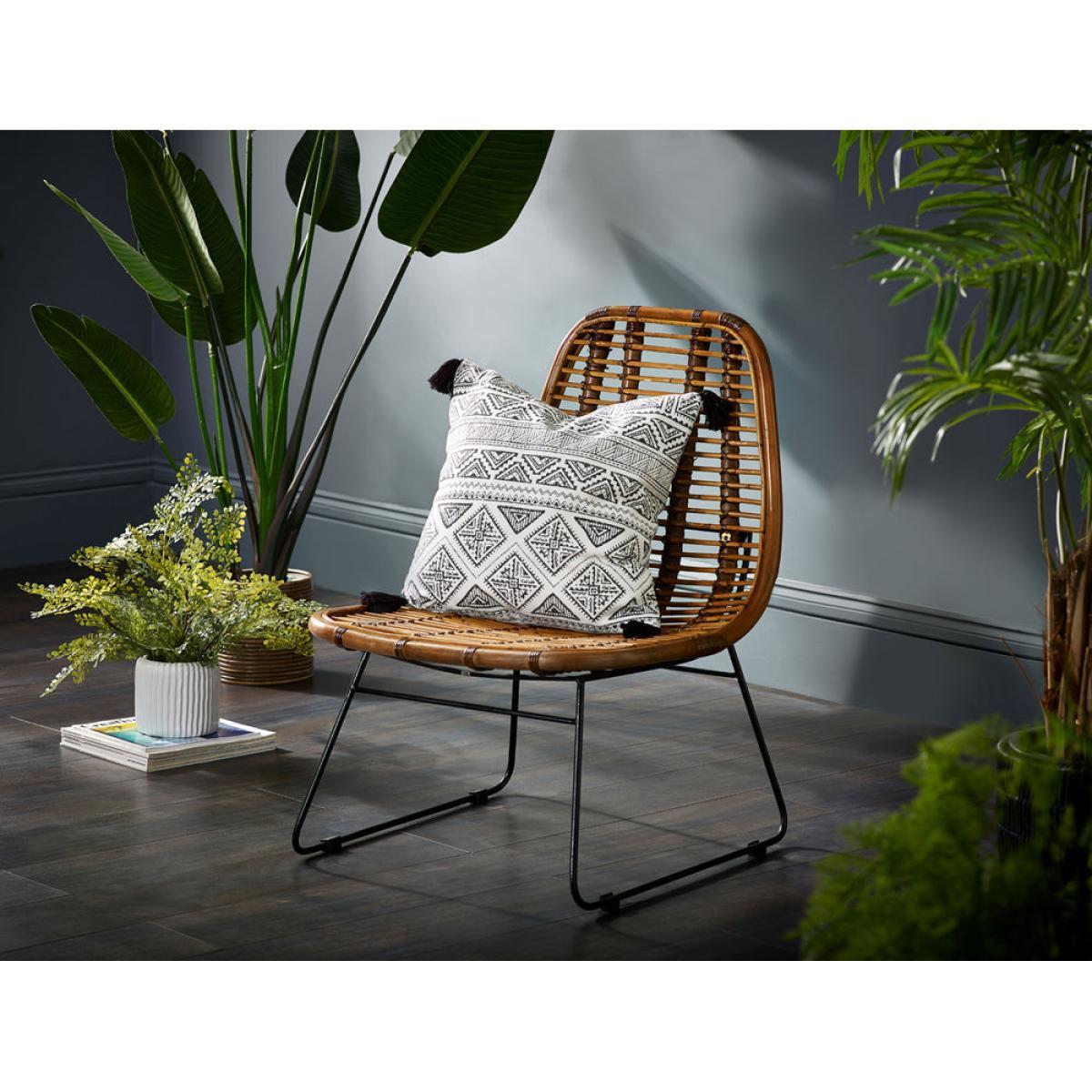 Made from rattan with a metal base and removable cushion, this chair fulfils all seating needs. Combining the on-trend rattan design with black industrial metal legs, whilst maximising comfort, this chair would impress guests and be the focal point in any home.