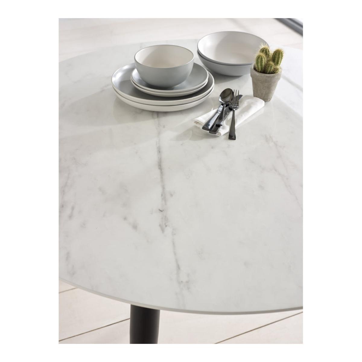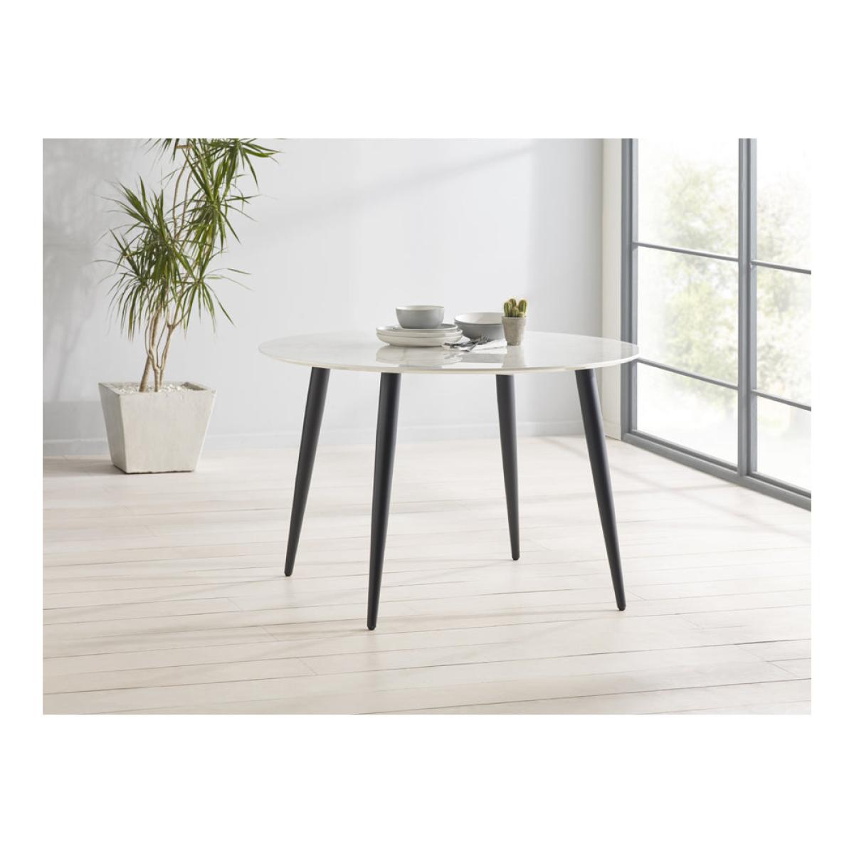 I love the Teddy's Collection Milano Round Dining Table for its sleek, minimalist design that can complement a range of interior styles, from modern scandi to contemporary classics. Its round shape creates an inviting, social atmosphere, making it perfect for both everyday family meals and hosting friends. The white marble-look top adds a touch of sophistication, while the contrasting black legs keep it grounded and versatile. For styling tips, pair it with upholstered or wooden chairs in neutral tones for a clean look, or add colourful or metallic accents for a more vibrant space. It's especially effective in open-plan kitchens or dining areas, where its timeless appeal can serve as a focal point.