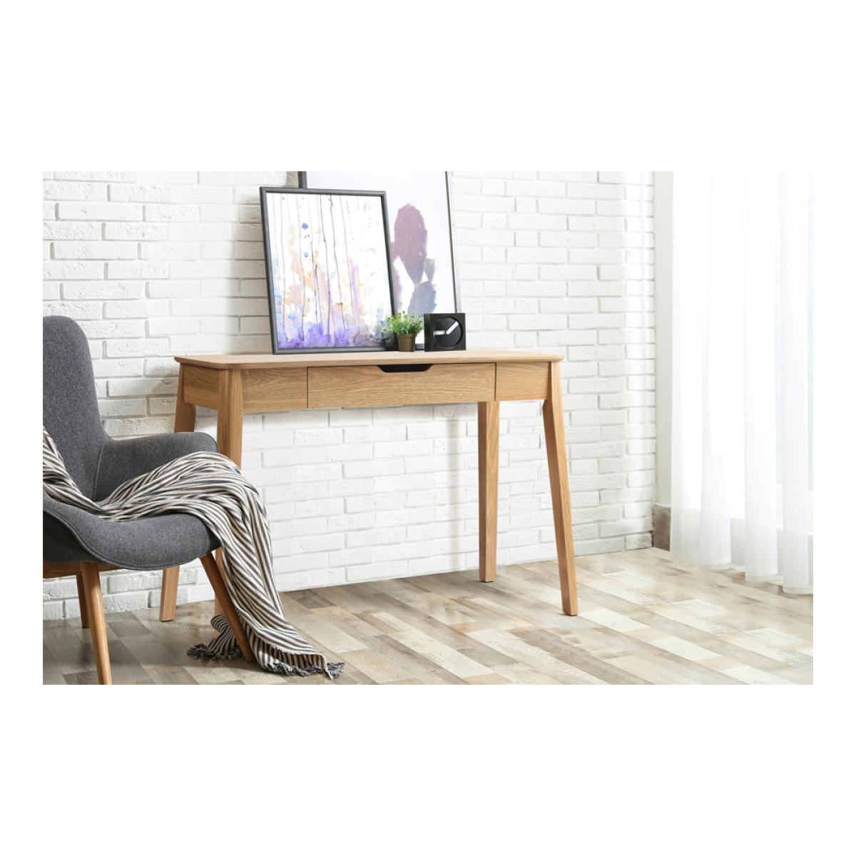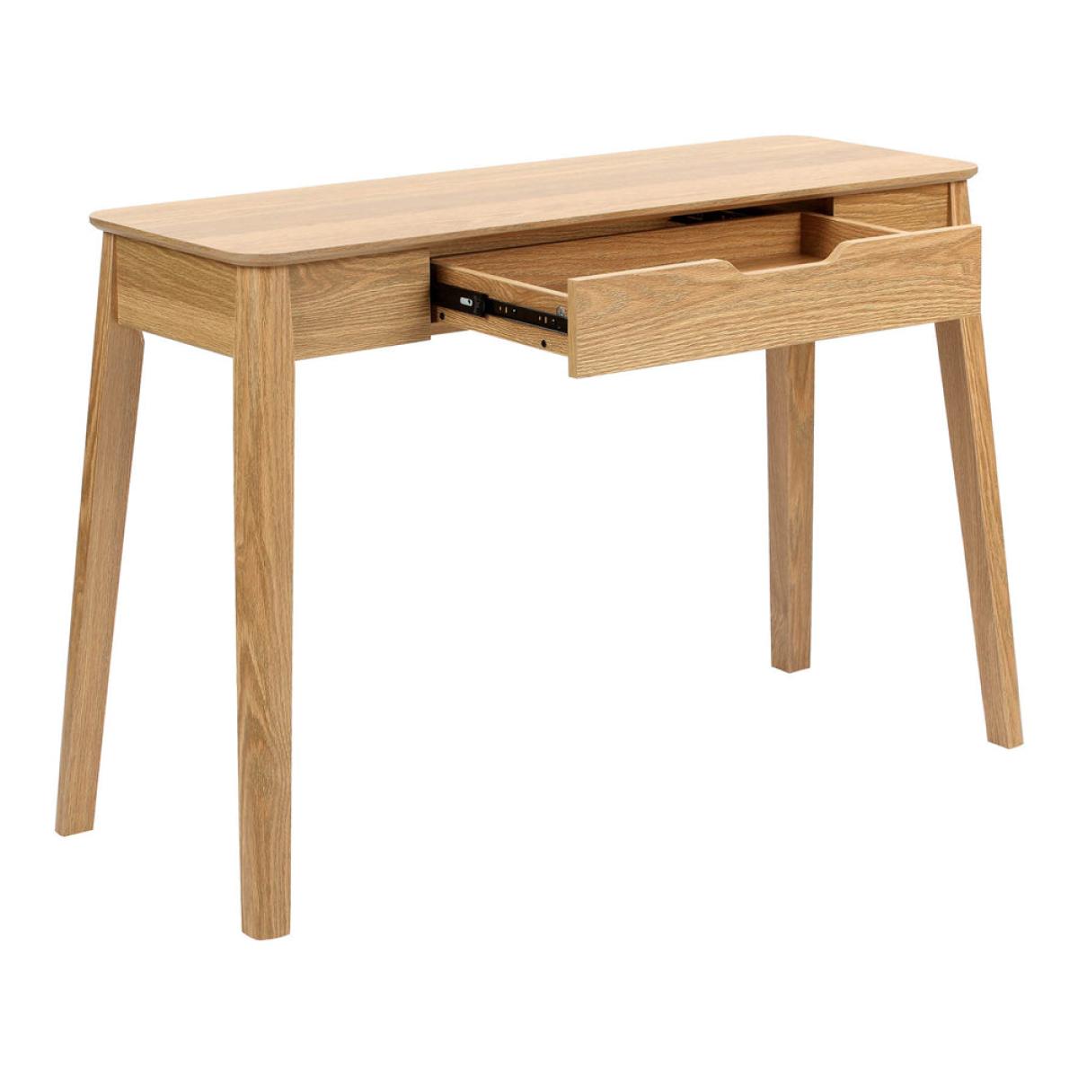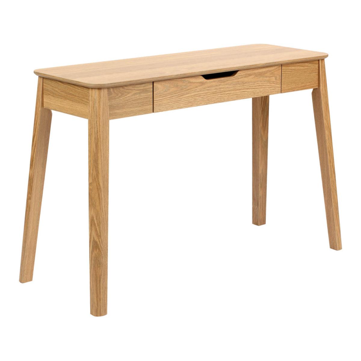 Designed with space in mind, the Teddy's Collection Niva console table is built to last and treated with a high-quality matt coating to bring out the natural grain in the wood. It has a large built-in drawer, so it will make a fabulous desk if you are setting up a home office in a nook or smaller space in your home. Teamed with a mirror, it will look gorgeous as a dressing table; however, it may well look best in your hallway, dressed with a vase of flowers or your favourite artwork. The dimensions are 76cm high, 110cm wide and 39. 5cm deep.