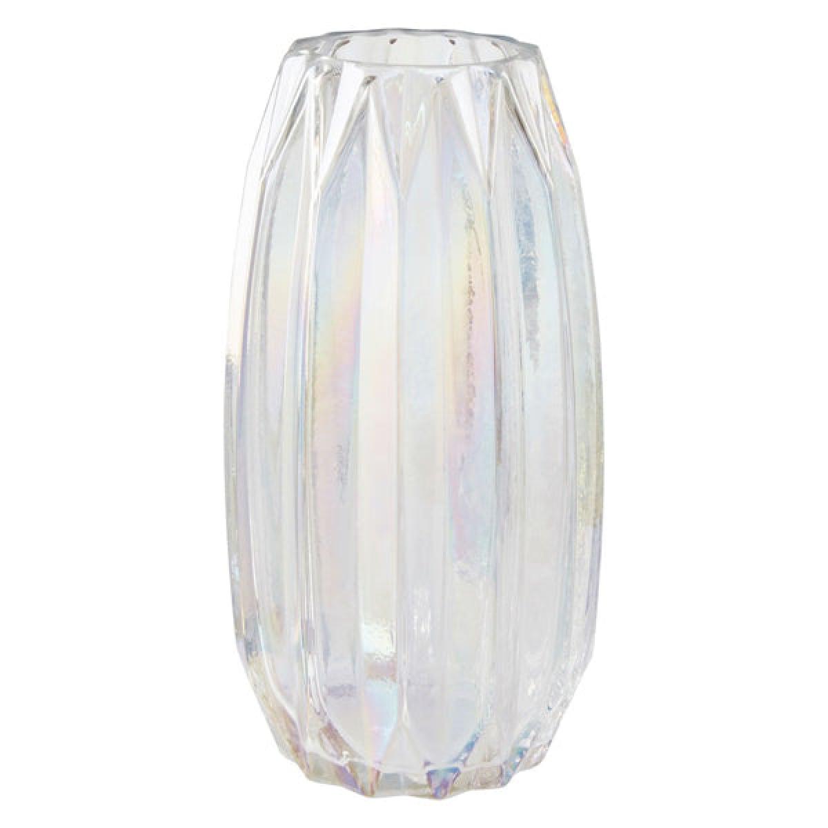 The Prince glass vase is crafted from robust glass and adorned with a ridged design that gives it a decorative appeal. S: H: 25 x W: 13 x D: 13 cm.