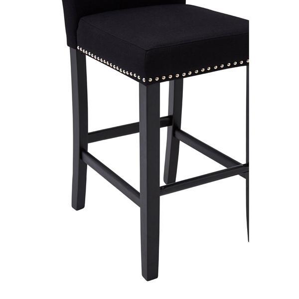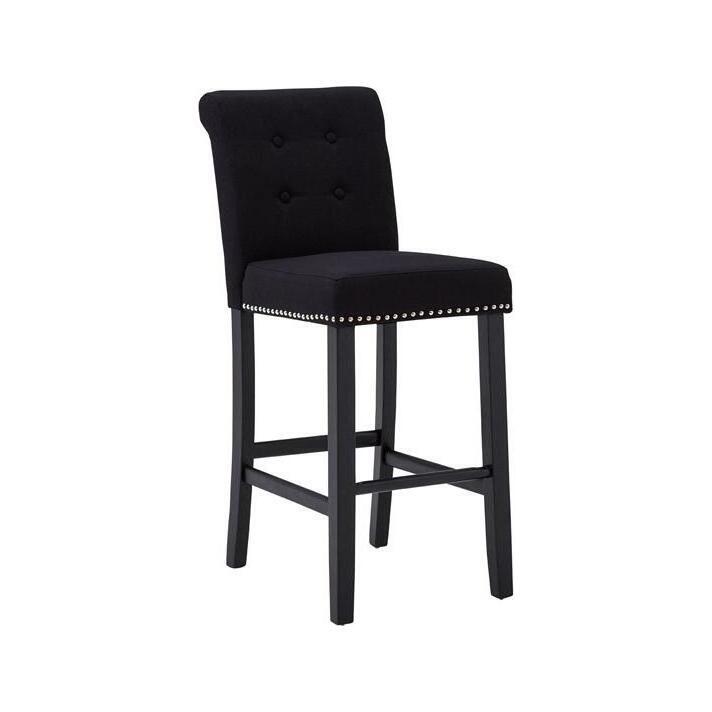Ruby Park Bar Chair Black Linen / Studs Rubberwood Legs.