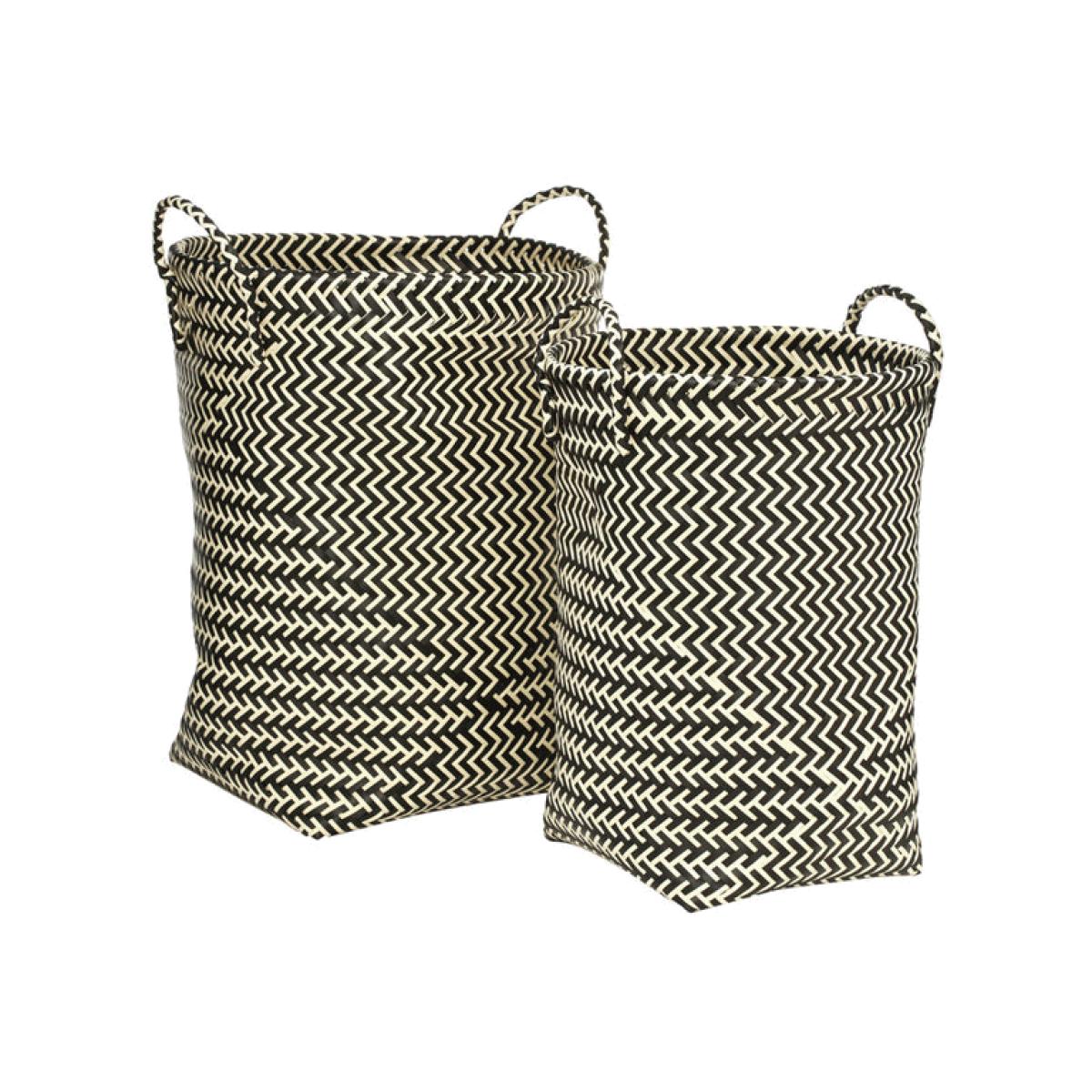 Teddy's Collection Set Of 2 Black & White Laundry Baskets