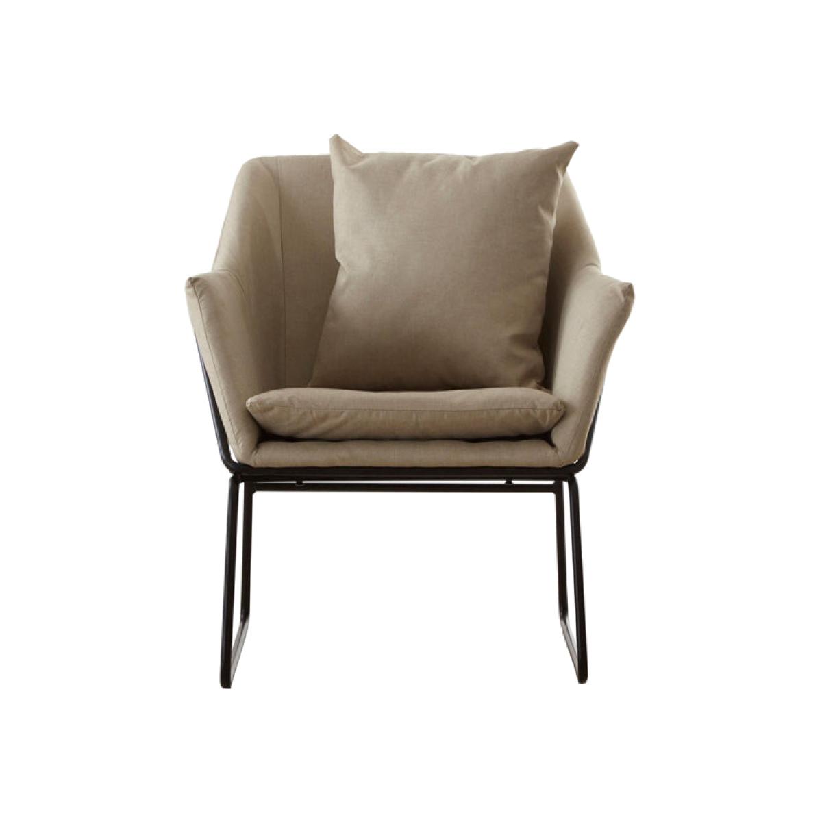 A minimalist black metal frame supports this chair's soft fabric Seater.