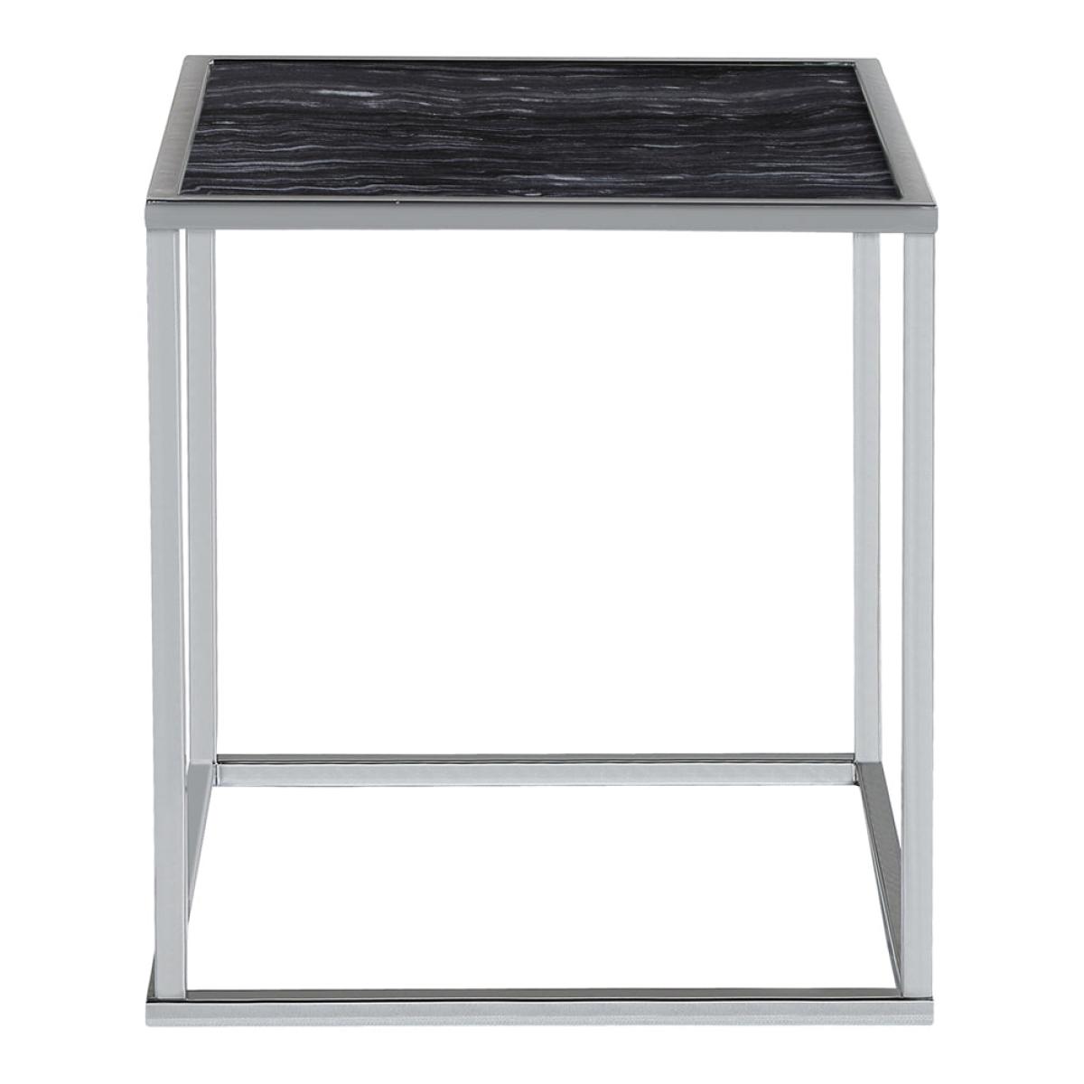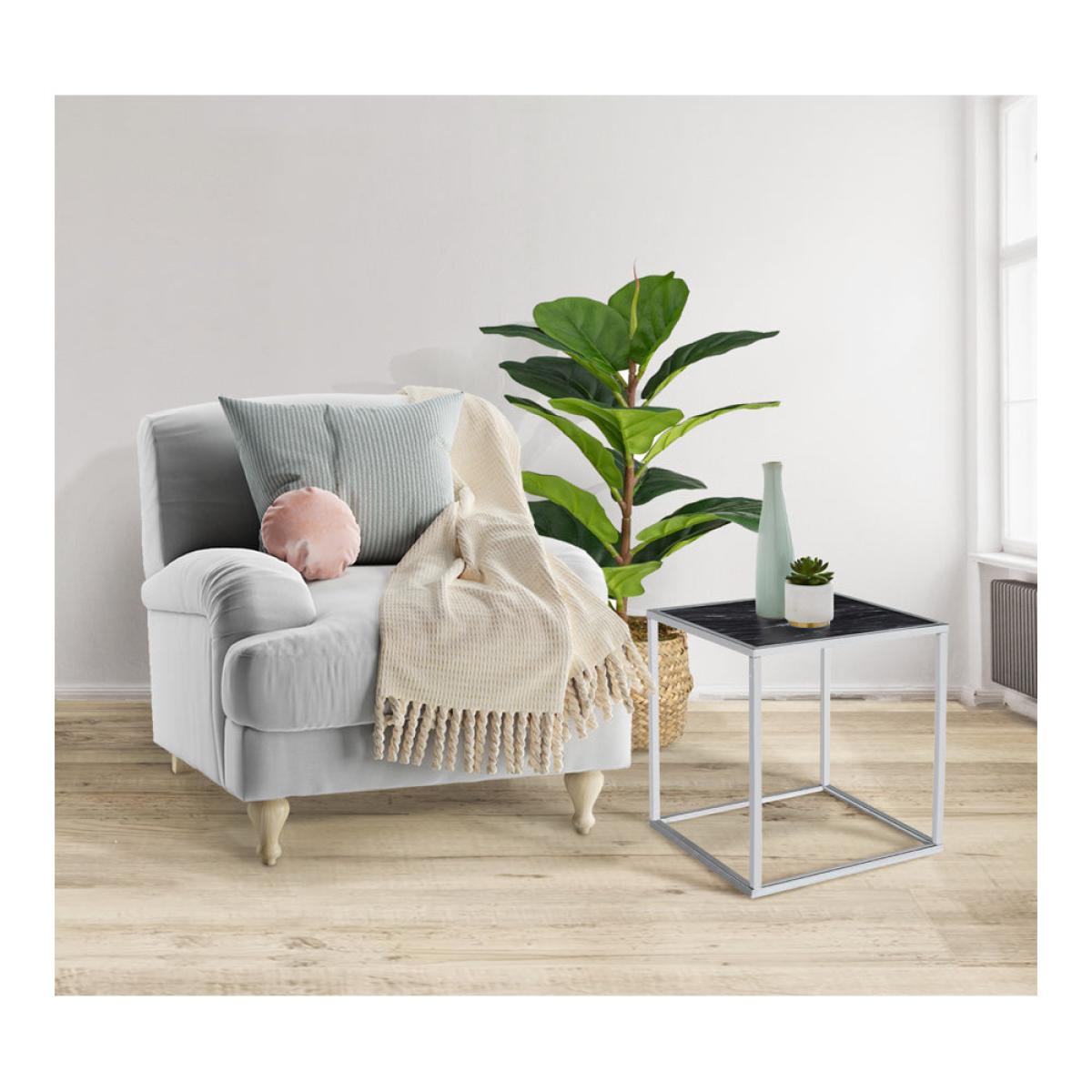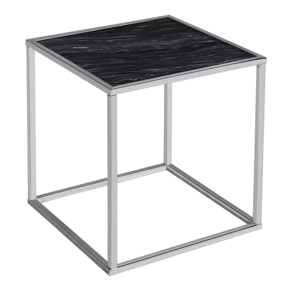 A striking yet practical contemporary side table. This handcrafted design showcases a square faux marble tabletop for a touch of subtle sophistication.