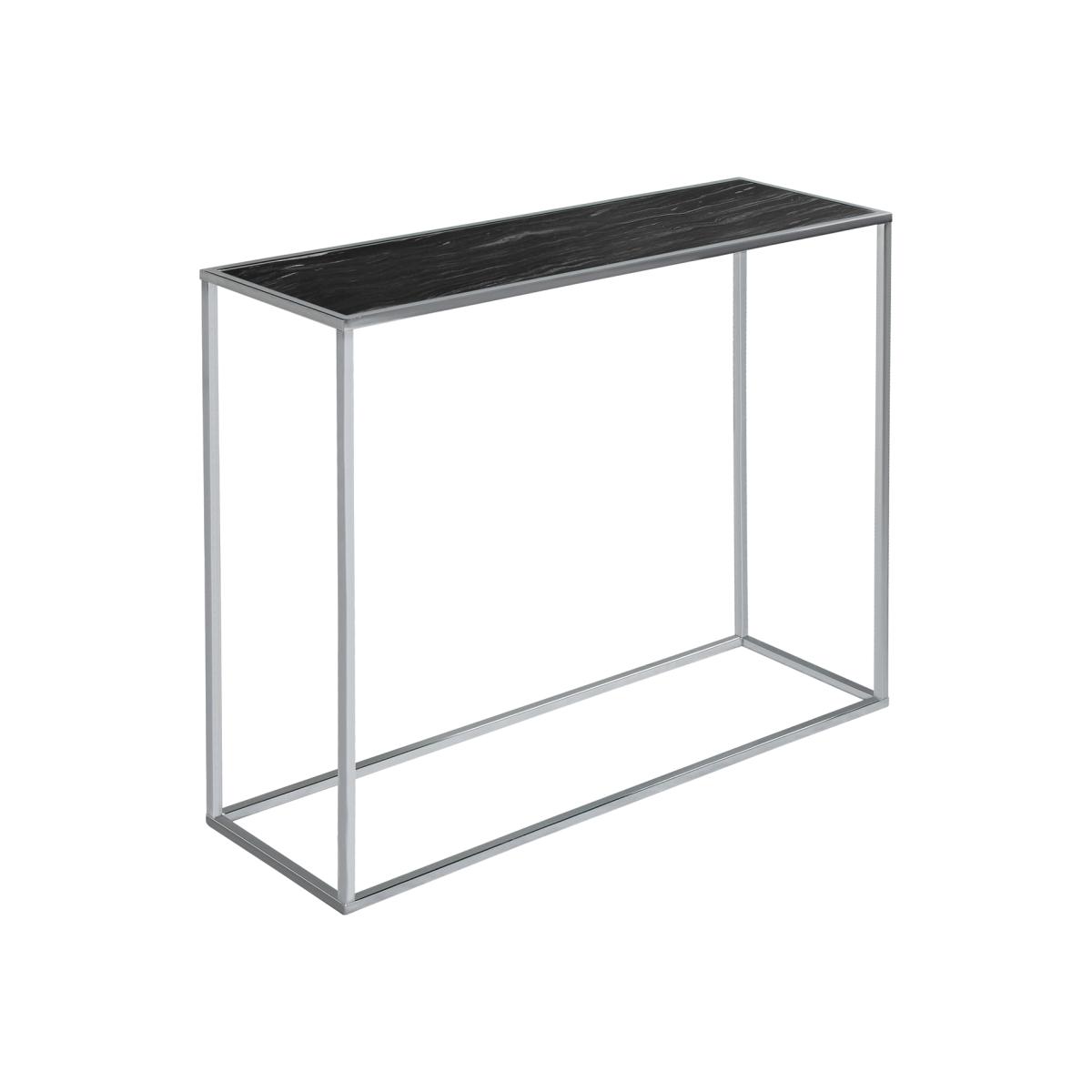 I love this piece because of its sleek, modern aesthetic, combining black and chrome for a versatile look that can complement both contemporary and minimalistic interiors. It's perfect in lounge areas or beside a sofa, where it can serve as a stylish surface for lamps, books, or decorative objects. For practical styling, I’d suggest layering it with textured accessories like a ceramic vase or a small sculpture to add visual interest. It works especially well in monochrome or monochrome-inspired schemes but can also provide a striking contrast in more colourful or eclectic interiors. Keep accessories simple to let the clean lines of the table shine, and consider placing a statement lamp or a tray on top for both functionality and style.