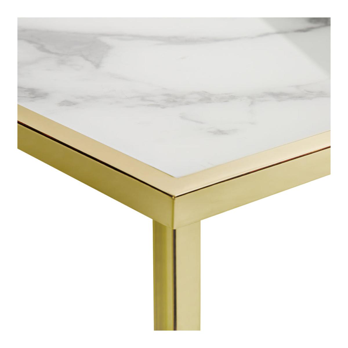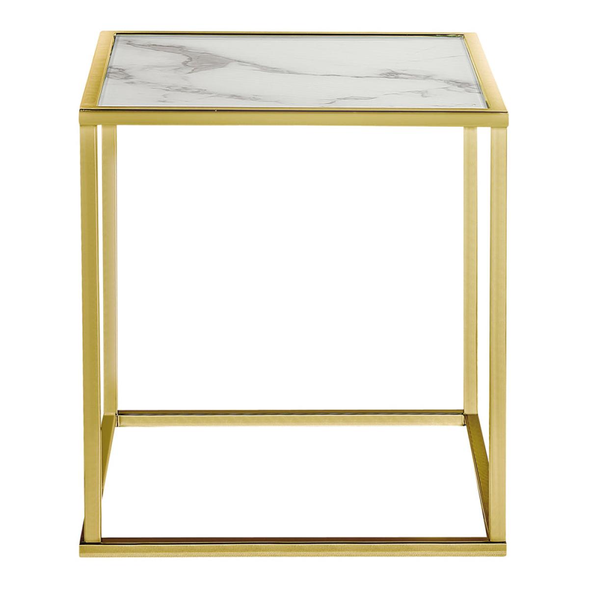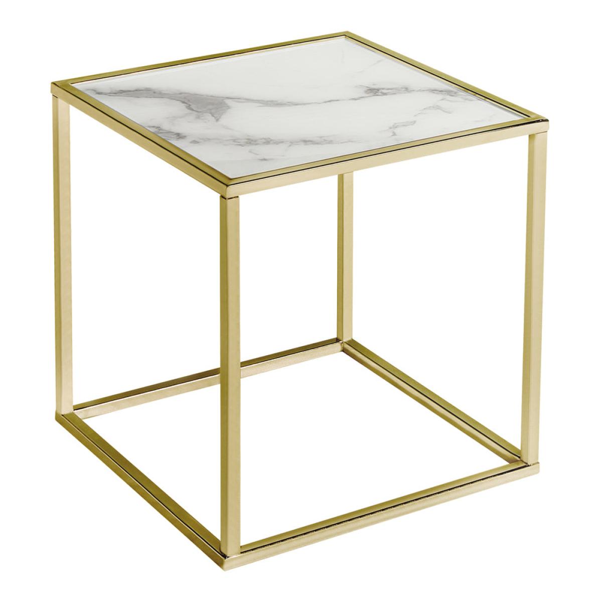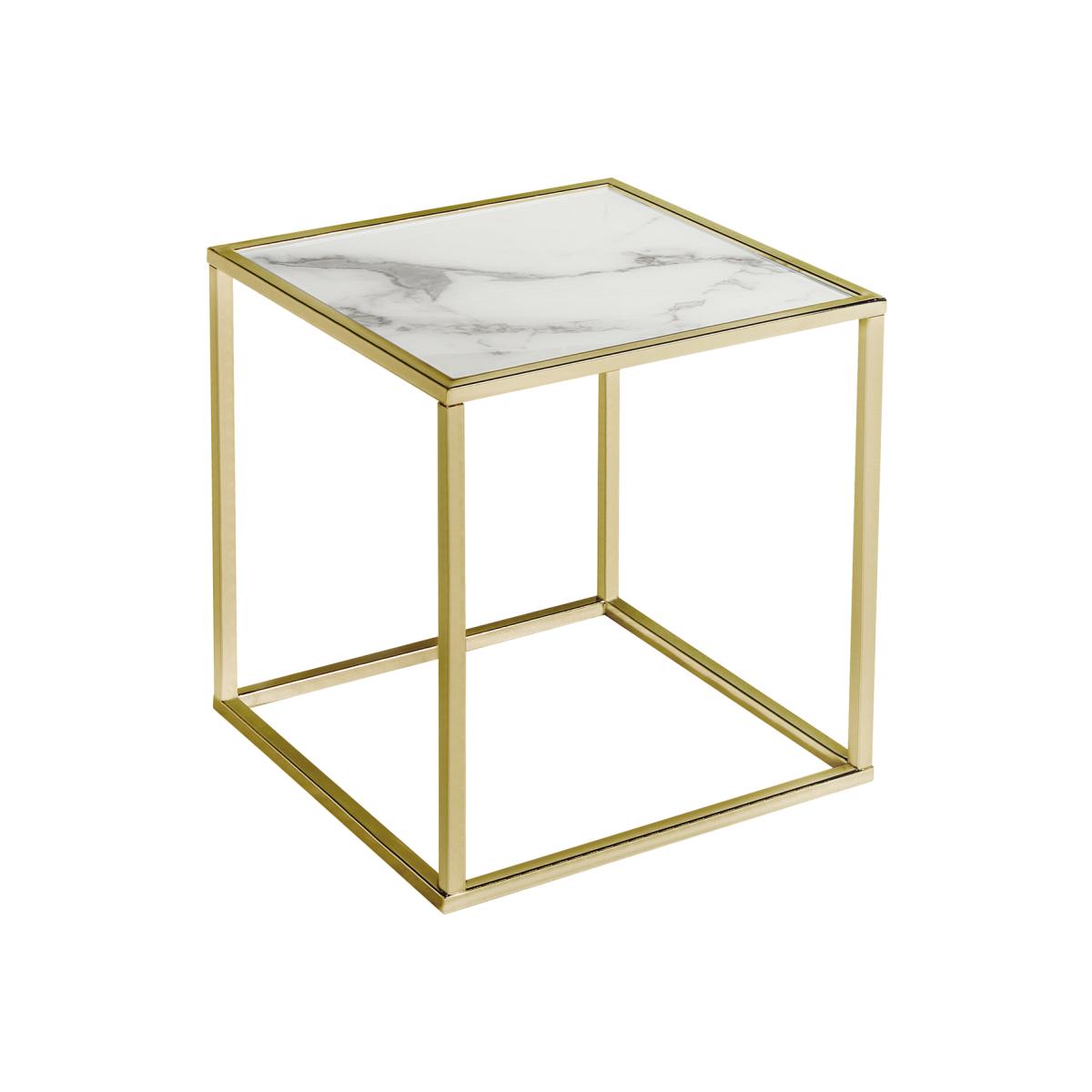 A striking yet practical contemporary side table. This handcrafted design showcases a square faux marble tabletop for a touch of subtle sophistication.