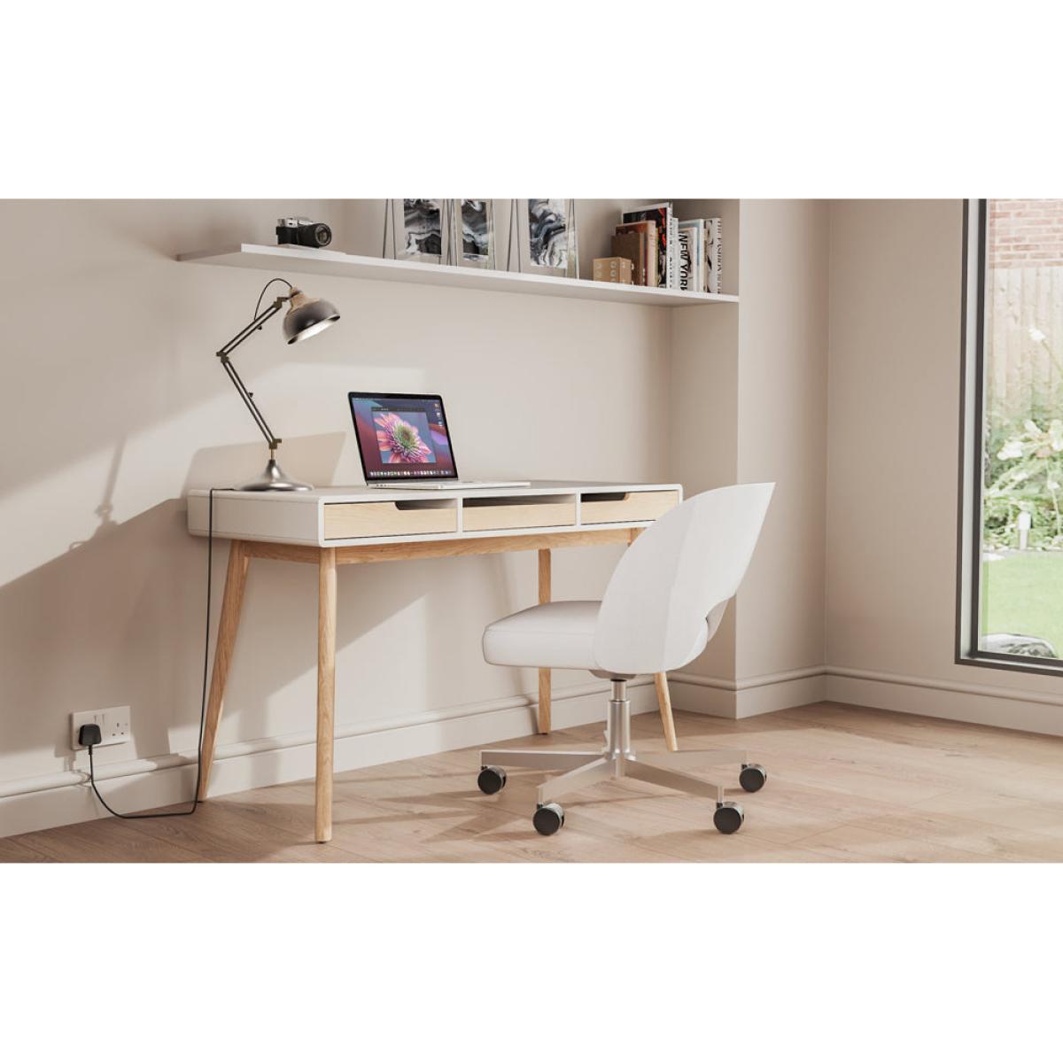 This desk, blending oak and white, to create an extremely stylish desk, would not look out of place in any working environment. With three drawers and a large tabletop, not only is this Scandi-style desk aesthetically pleasing, but it is also extremely practical for home or office working, and will allow for hard work to continue wherever the setting.