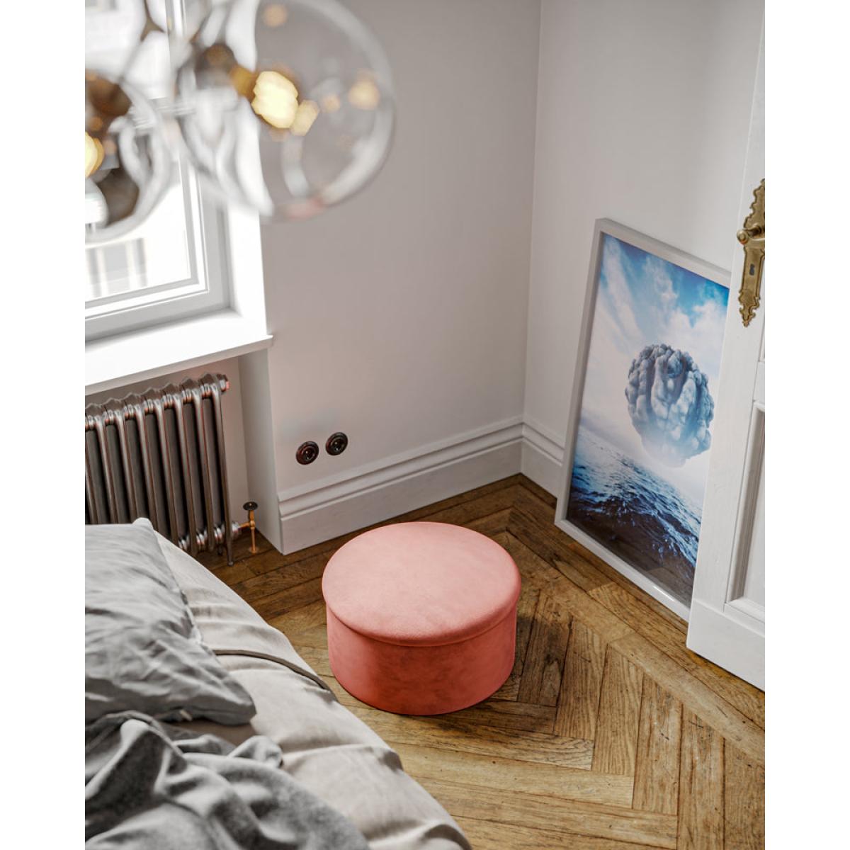 I love this pink ottoman for its soft, inviting colour and versatile shape, making it a great addition to various interiors. It's ideal for adding a pop of colour to neutral schemes or complementing a pastel palette in a bedroom or living room. Its rounded form works well in contemporary and cosy traditional spaces alike, providing both visual interest and functional seating or a footrest. Practical styling tips include placing it alongside a neutral sofa to introduce colour or using it as a centrepiece in a colour-themed room. It also pairs beautifully with textured cushions or throws, enriching the tactile appeal of your space. Its plush fabric lends an understated luxe, making it suitable for relaxed, sophisticated settings.