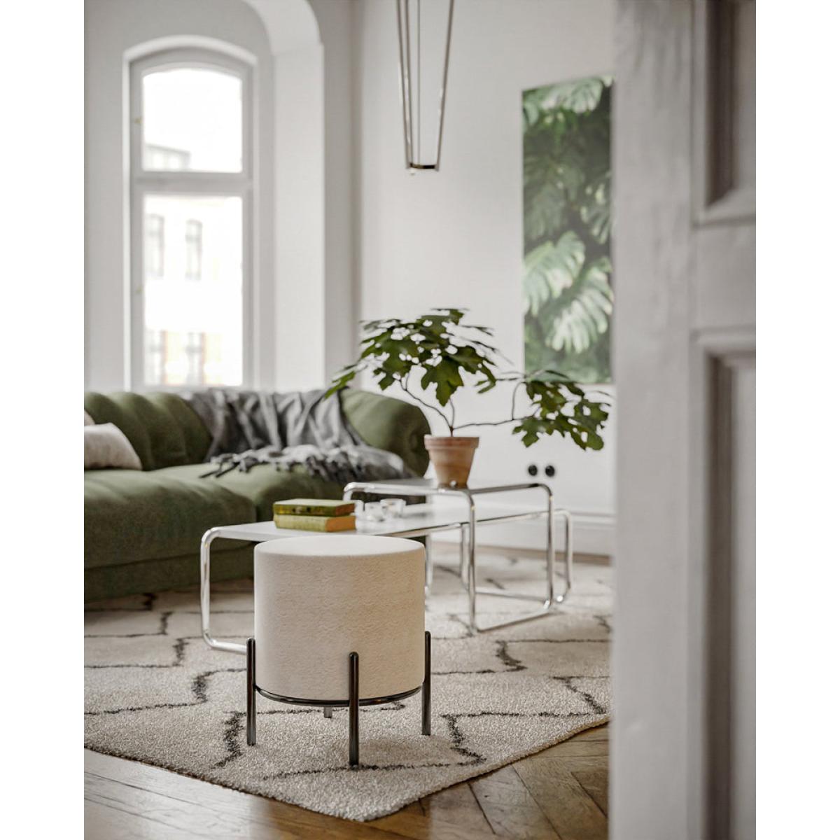 At Teddy. Beau, we do not hesitate when we find a piece that is outstanding in its class, and when we found the Trollius Footstool in white, we knew we had stumbled across something wonderful. The irresistibly tactile teddy-bear fabric is evocative of the cosy comfort and loving warmth of happy childhood yet worked into a stylish round ottoman for modern living. Described as a footstool, we find it hard not to simply sit and touch it. Minimalist in style and teamed with a smooth black metal frame, it will tempt you in any living space. Materials: MDF, Teddy Boucle Fabric, Foam and Metal. No assembly required.