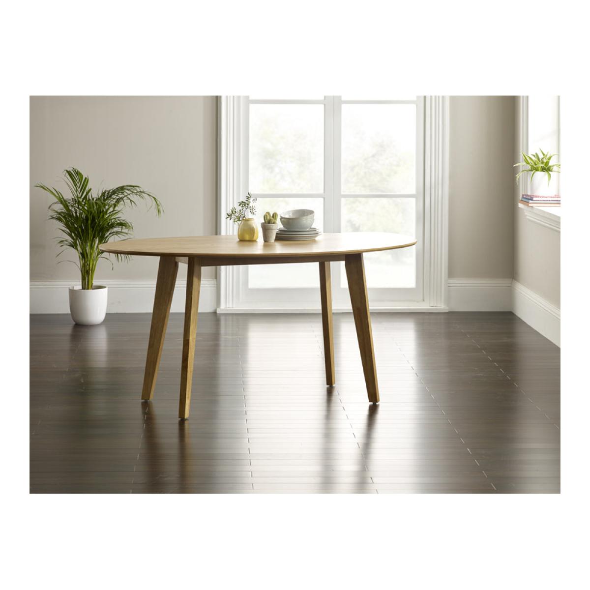 If it's a simple, stylish and an unusual dining table that you are after, look no further. The Viborg Dining Table has an oval top and straight legs, with the angles softened slightly. Stunning to look at, it's ideal for a group of family or friends to enjoy a meal. At a height of 75cm, a width of 160cm and a depth of 98cm, this table is the perfect size. It's big enough to seat six people, and small enough for you to have a conversation without having to shout to be heard. In a light ash colour, this table will go with any décor. Materials: Solid rubberwood, MDF and real ash veneers. Assembly Required: Yes.