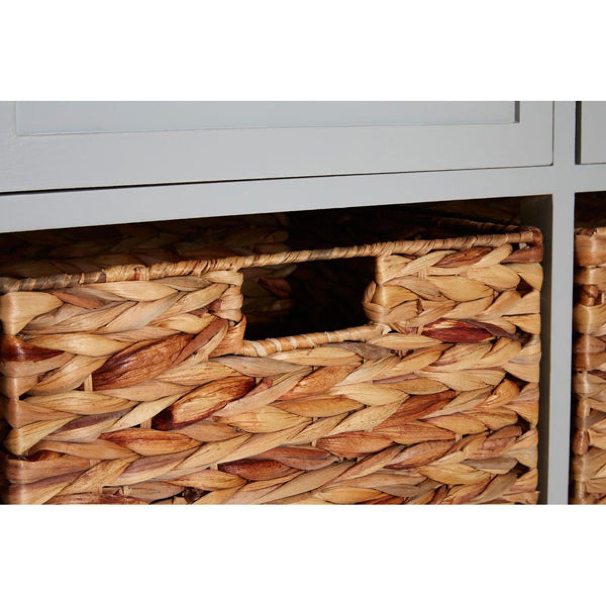 I love this piece for its versatile appeal and practical design. The grey finish paired with natural wicker baskets creates a relaxed, coastal vibe but also works beautifully in contemporary or Scandinavian interiors. Its large size makes it perfect for bedroom storage, entryways, or living rooms where organisation is key. Styling tips include layering with small decorative items on top, such as plants or lamps, to soften its utilitarian look, or keeping it minimal for a sleek, modern feel. The baskets add texture and ease of access, making it a functional yet stylish storage solution that can easily adapt to different schemes.
