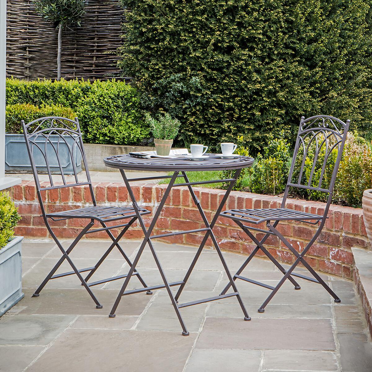 Please note: this product cannot be delivered to all Offshore Islands, Northern Ireland or Republic of Ireland. This practical outdoor bistro dining set features an intricate round table and two chairs in a distressed, painted brown finish. Each item is foldable for easy storage. Direct sun exposure can cause metal to heat up. Always take care when out in the sun. Composition: Metal. Product Dimensions:Table: 70x70x76cm - 8kg. Chair: 42x52x93cm - 6kg. Please remember to measure your available space before ordering. Packaged Dimensions:Parcel 1: 102x72x11cm - 10.1kg Parcel 2: 108x45x22cm - 13.64kg. This product will be dispatched by one of our trusted suppliers. You’ll be contacted by their selected courier about your delivery.