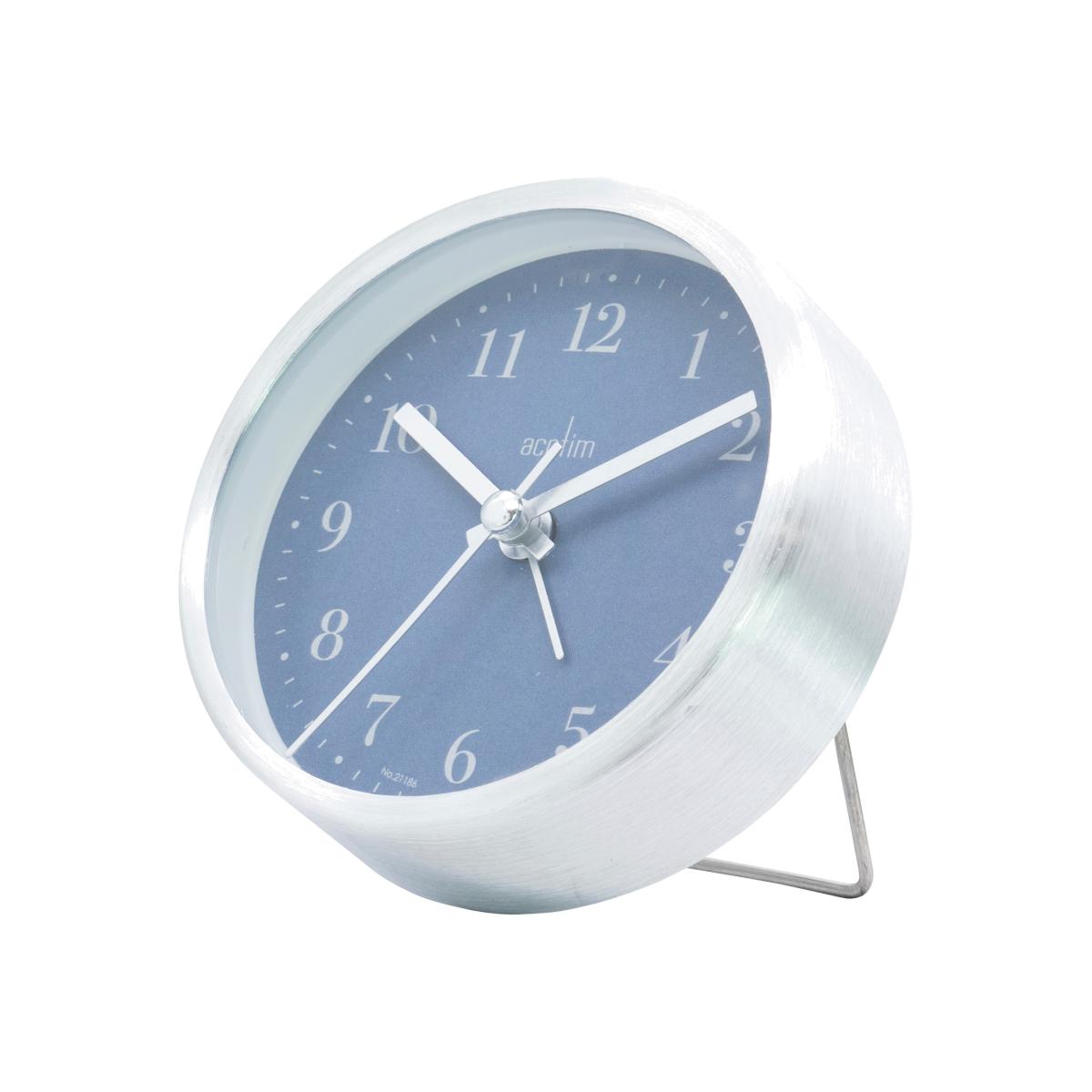 Tegan Non-Ticking Analogue Alarm Clock Silver Suede Blue - Suede Blue