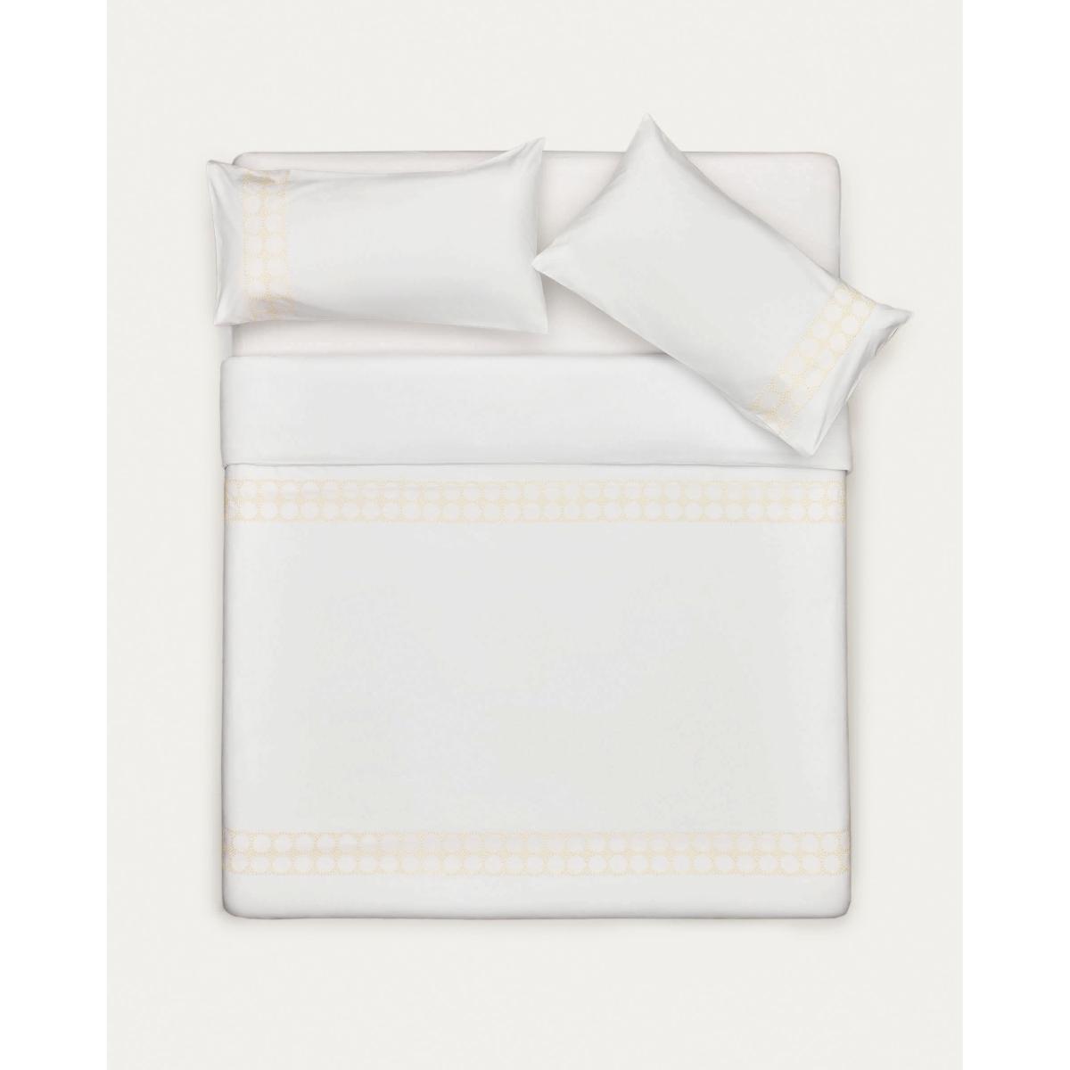 Teia cotton percale duvet cover and pillowcase set in white with floral embroidery, 135x200cm