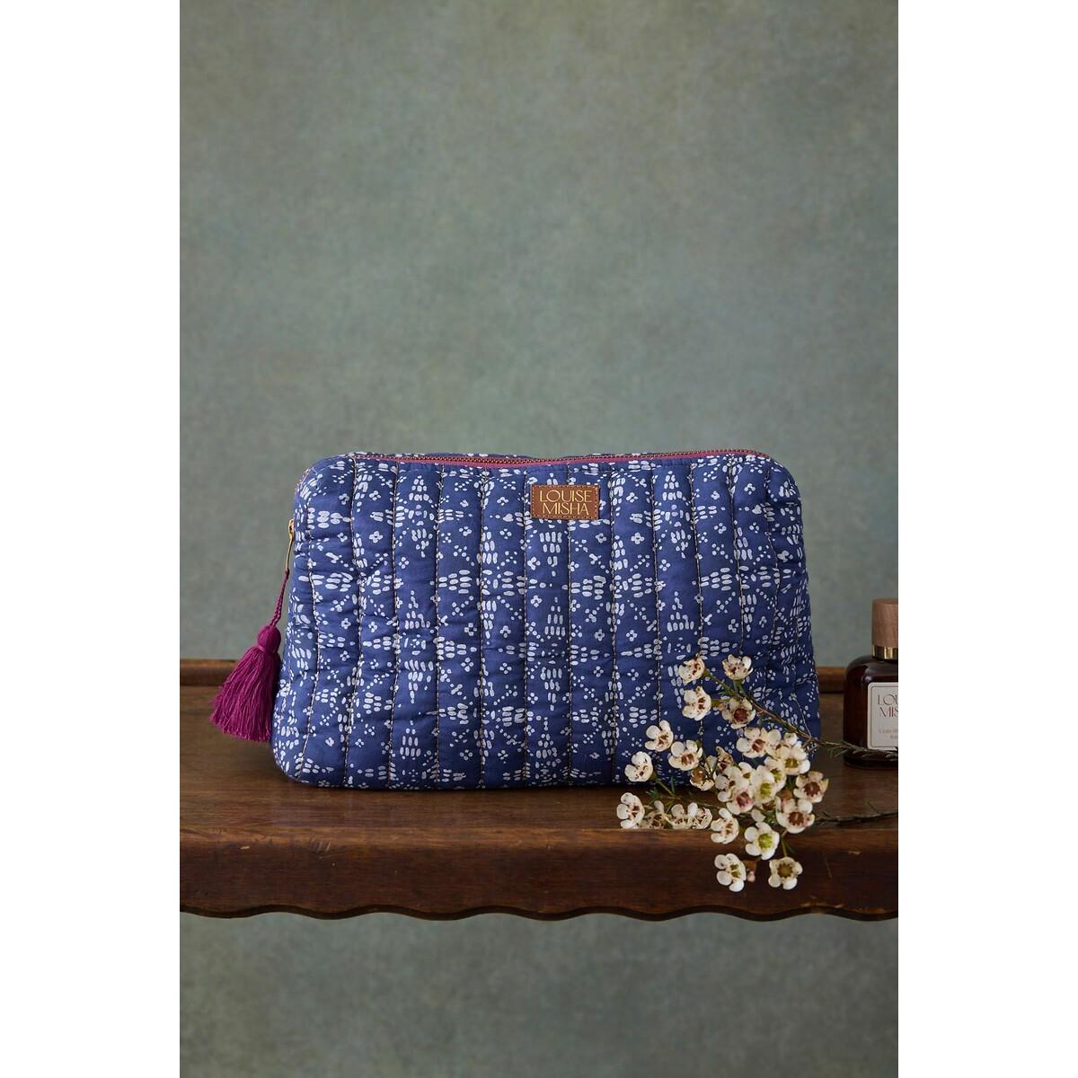 The graphic print wash bag for women by Louise Misha - Teiki model - will find its place in the bathroom and in your luggage. A quilted cotton wash bag with a zip-up fastening, handmade tassels and a branded leather patch. Product details • Main zip-up fastening + handmade tassels • Louise Misha signed leather patch • Water-repellent lining • Dimensions:W26 x H18 x D10cm Fabric content and care advice • 100% cotton • Please refer to the care instructions on the product label • Cotton from organic farming. Organic farming does not use any chemicals, pesticides, insecticides or GMOs. Produced with minimal impact on biodiversity. • OEKO-TEX® Standard 100. Standard 100 certification by OEKO-TEX® tests textile products for harmful substances via an independent, international label.