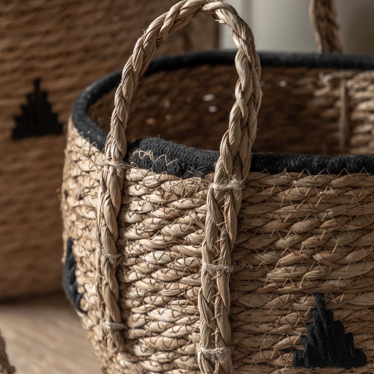 I love these baskets for their versatility and natural texture-they add warmth and organic charm to almost any space. They work particularly well in coastal, Scandinavian, or boho interiors, where their neutral hues can complement a variety of colour schemes. The set of three is practical for organising clutter, whether in a living room, bathroom, or bedroom, and you can easily style them on shelves, under consoles, or in open wardrobes. For a clean look, use the black baskets for items you want to contain but keep slightly more hidden, and let the natural ones serve as decorative storage for softer or more colourful objects. These baskets are also great for adding a tactile element to open-plan layouts and can be easily moved around to refresh a space without needing much effort.