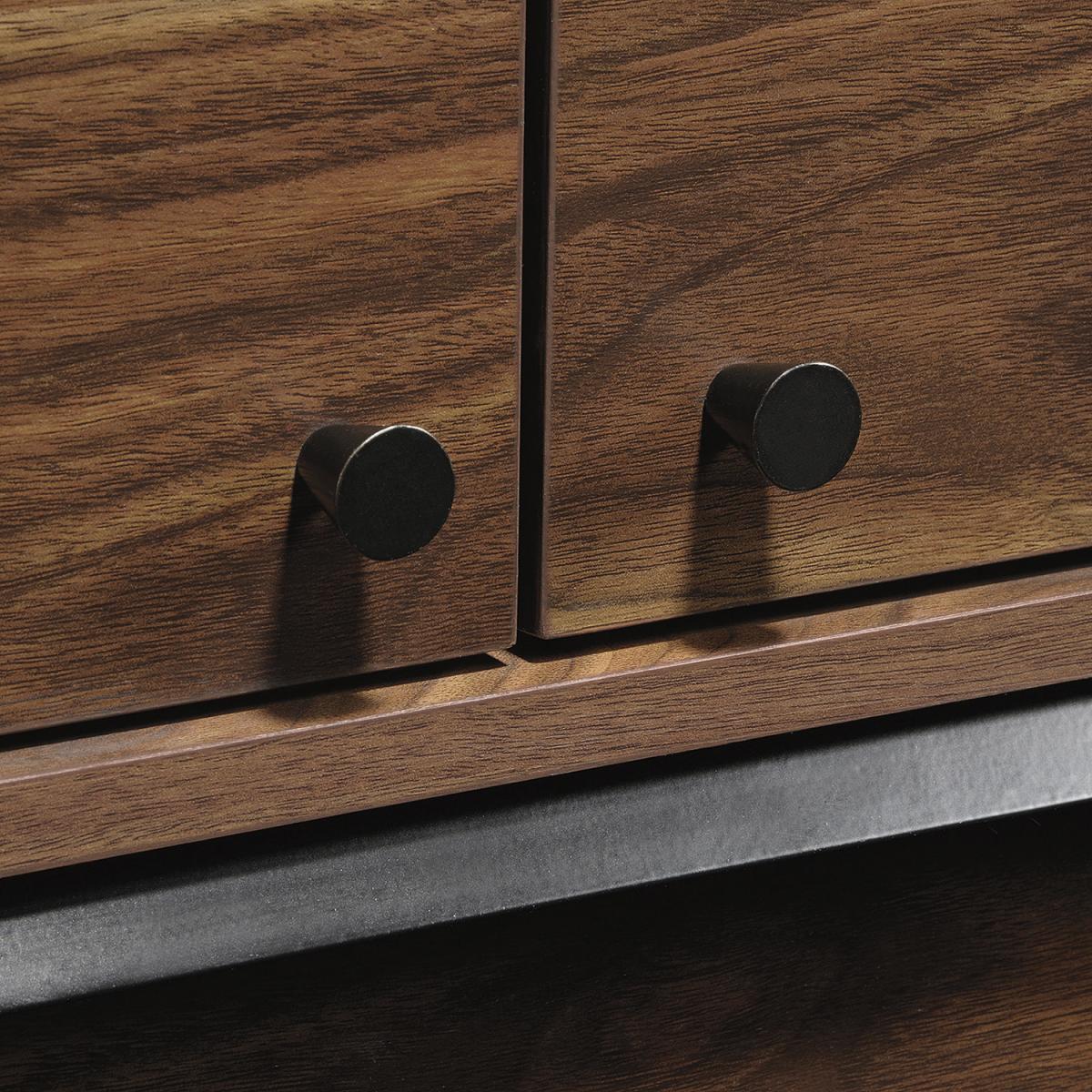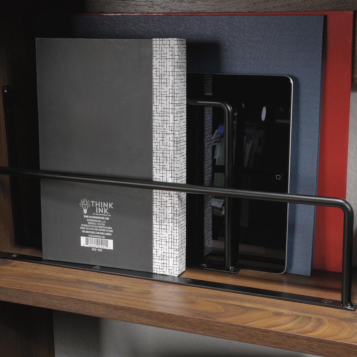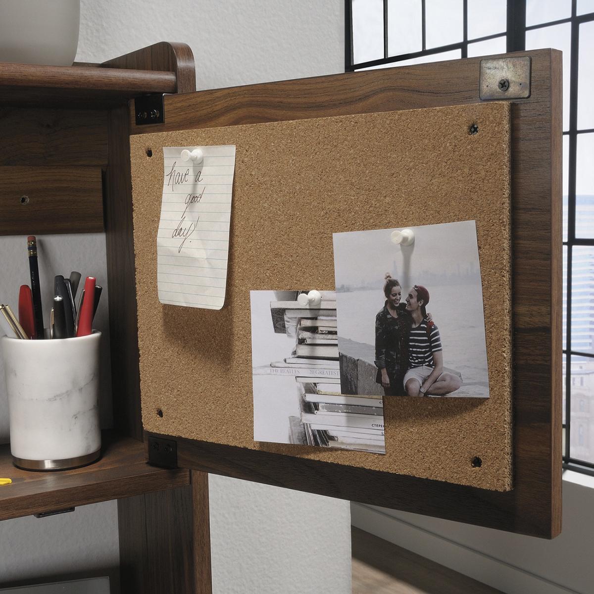 The Teknik Hampstead Park Wall Desk is our stylish and minimalist design option, perfect for all colour schemes and decor. Beautifully finished in a Grand Walnut effect with black accents handles, this sleek and modern styled space saving wall desk provides a convenient solution for those with limited space, simple and versatile to hang anywhere within your home or office area. Seperated with two distinct compartments, the lower half has a door which flips down to create a spacious work area for your laptop, work accessories and even your favourite cup of tea! The top half has two upper doors which open out to offer you even more storage for your office envelopes and folders tacked on the inside of the doors is a bulletin style board for pinning your reminders and paperwork for when you need them. On top of these is an upper shelf to complete the look, great for displaying all manner of home decor. This wall desk also includes cord management pass-throughs so you can keep all your wires neat and stowed away. Also ideal to match in this range are the Narrow Bookcase, Wide Bookcase, Compact Desk and Park Desk, all finished in the same quintessential and modern style.