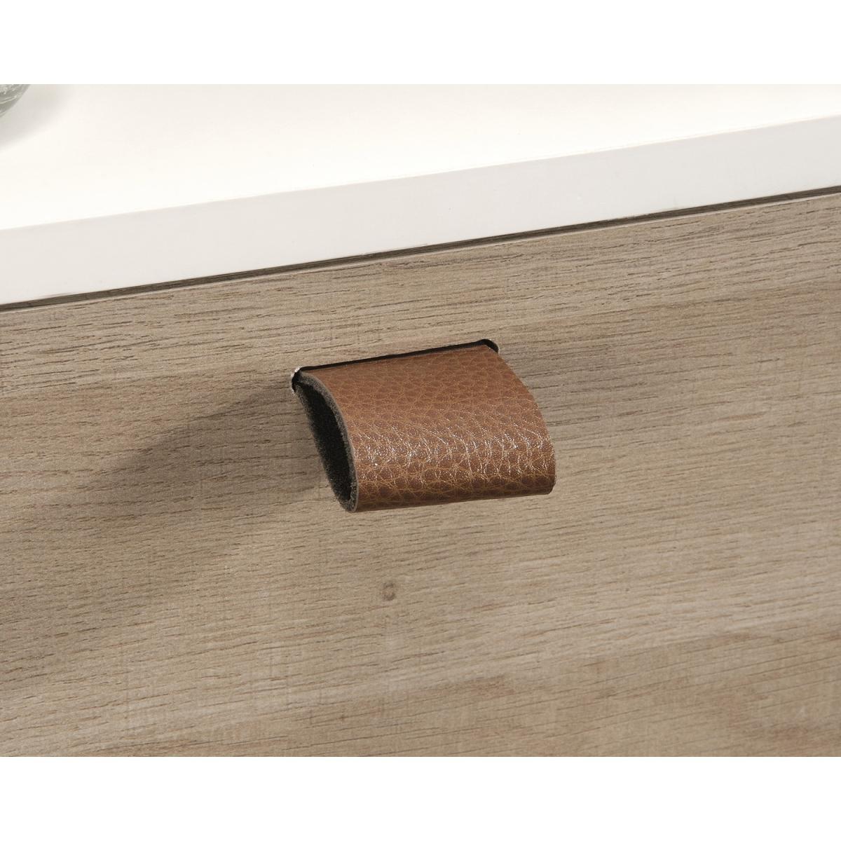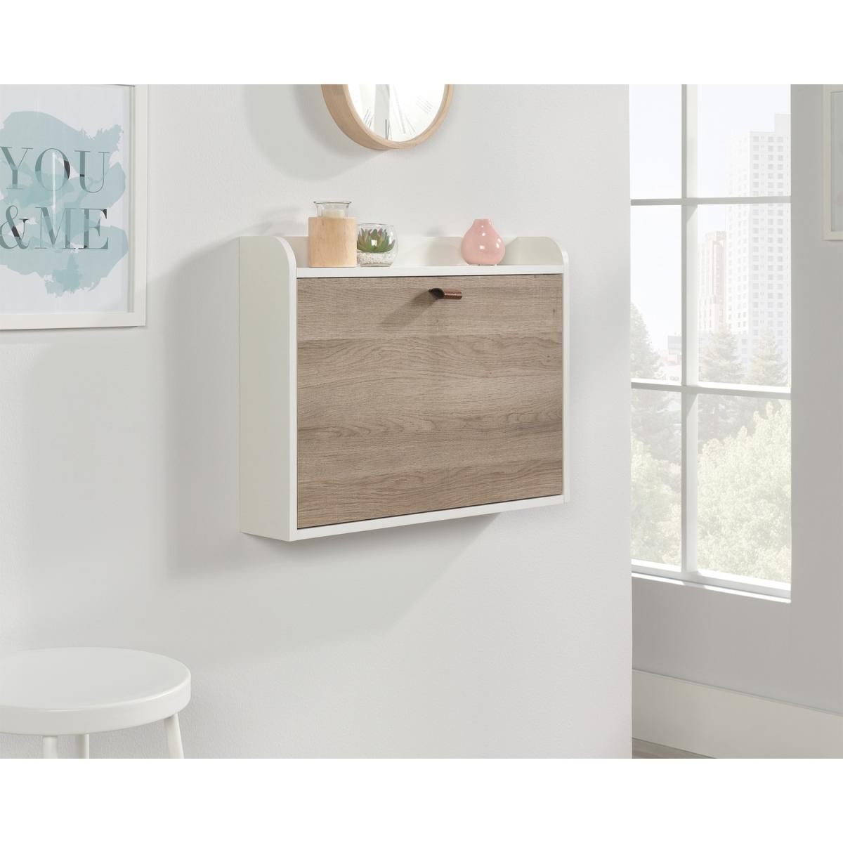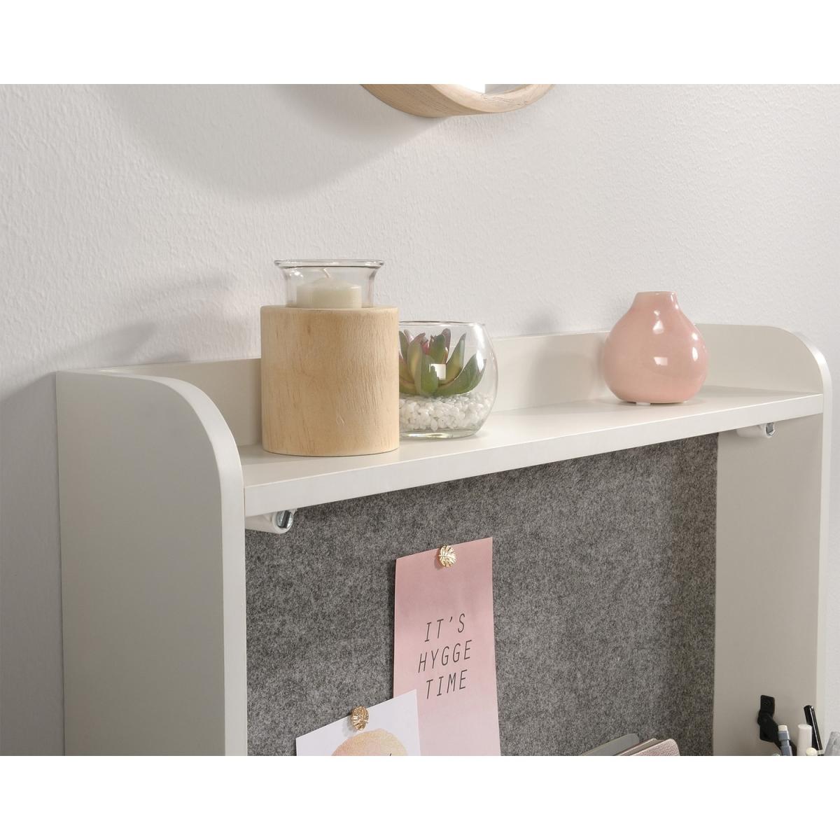 Dimensions H47 x W63 x D12.7 cm. The Teknik Office Avon Leather Handled Wall Desk is a charming and neutrally coloured option for all styles of office and colour schemes. This fresh and modern styled space saving hanging desk is finished in white with a Sky Oak effect flip down door this provides a convenient solution for those with limited space. This hanging desk is versatile enough to place anywhere in your home or office and the door can be lowered down to create a spacious desk work area for your laptop office accessories and possibly even a cup of your favourite tea! Once the desk is fully opened there is also a large contrasting grey bulletin style board in front of you perfect for pinning your reminders and paperwork in full view for when you need them. An open upper shelf on top of the desk completes the look for displaying all manner of home decor. The look is completed with the front also featuring an unusual yet stunning addition of a drawer pull in durable brown leather for an extra touch of class. A beautiful and versatile wall desk which will blend effortlessly within your home or working area. Features. Space saving hanging desk. Flip down door to create a spacious working area. Contains an upper shelf perfect for storage. Grey interior bulletin-style board. Accented leather handle pull. Easy assembly..