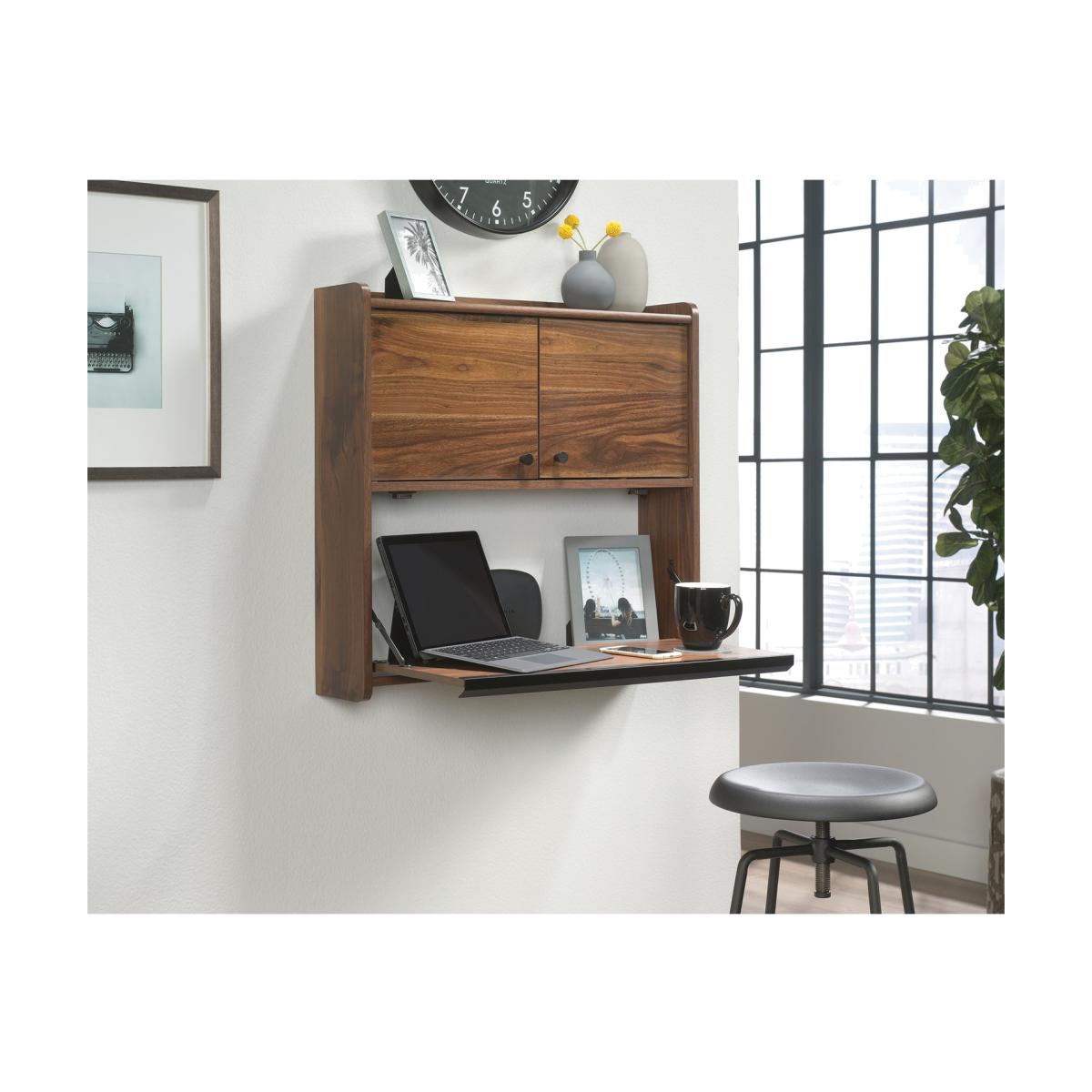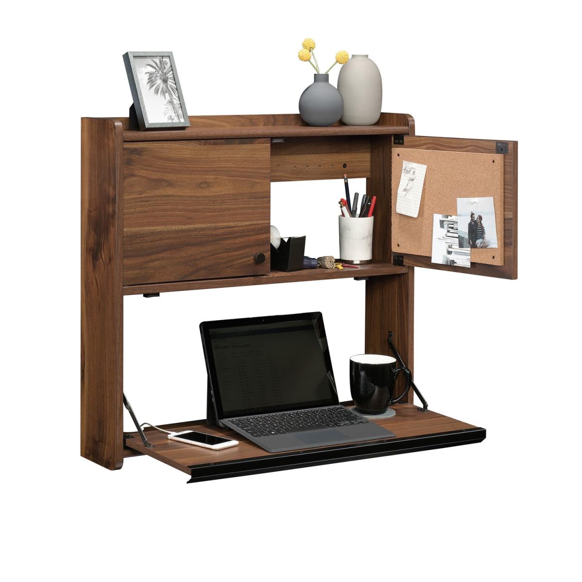 Dimensions H67.8 x W71.4 x D16 cm. The Teknik Office Hampstead Park Wall Desk is our stylish and minimalist design option perfect for all colour schemes and decor. Beautifully finished in a Grand Walnut effect with black accents handles this sleek and modern styled space saving wall desk provides a convenient solution for those with limited space simple and versatile to hang anywhere within your home or office area. Separated with two distinct compartments the lower half has a door which flips down to create a spacious work area for your laptop work accessories and even your favourite cup of tea! The top half has two upper doors which open out to offer you even more storage for your office envelopes and folders; tacked on the inside of the doors is a bulletin style board for pinning your reminders and paperwork for when you need them. On top of these is an upper shelf to complete the look great for displaying all manner of home decor. This wall desk also includes cord management pass-throughs so you can keep all your wires neat and stowed away. Also ideal to match in this range are the Narrow Bookcase Wide Bookcase Compact Desk and Park Desk all finished in the same quintessential and modern style. Features. Space saving hanging desk. Flip down door to create a spacious working area. Contains an upper shelf perfect for storage. Storage cupboard above the work area for additional office accessories. Cord management pass through. Easy assembly..