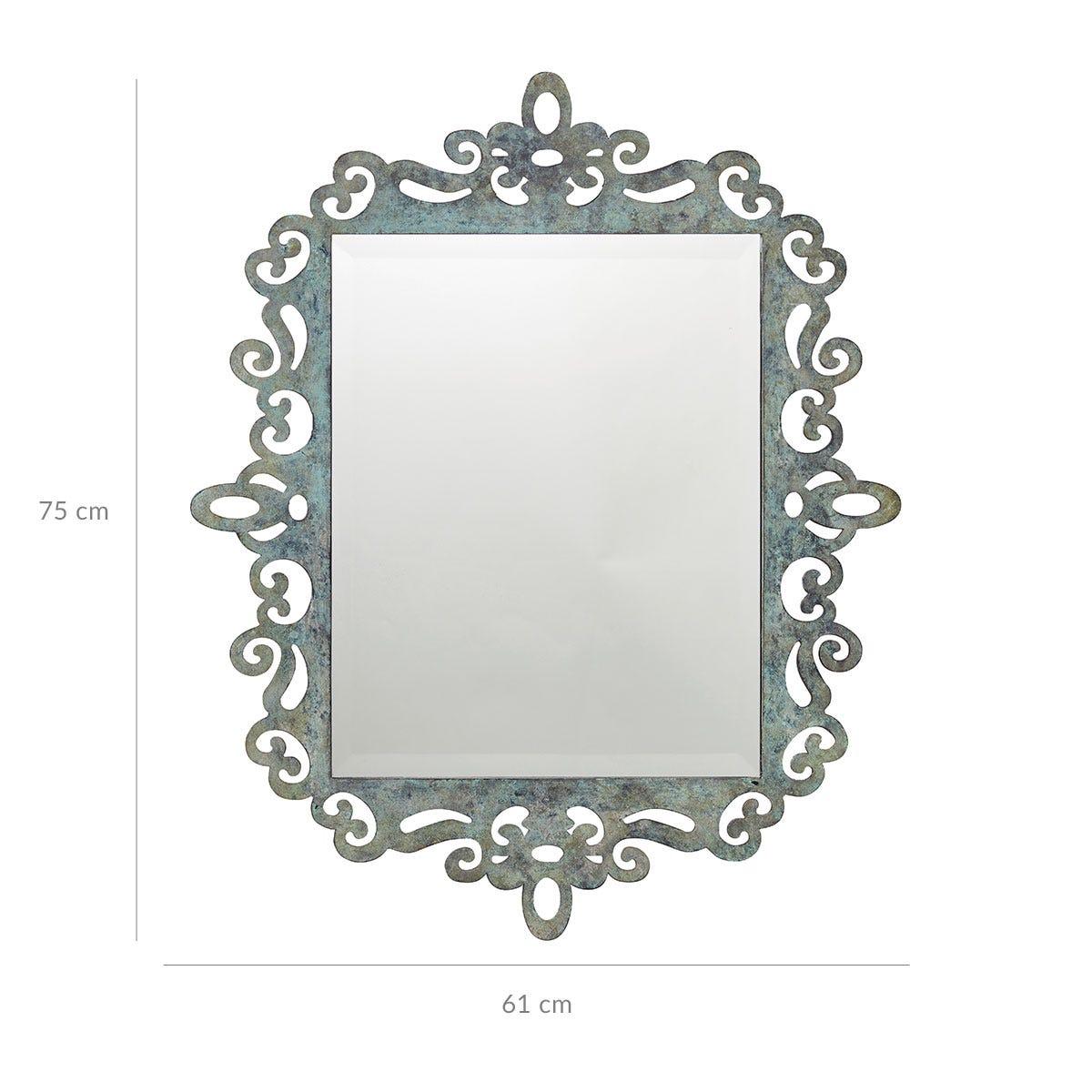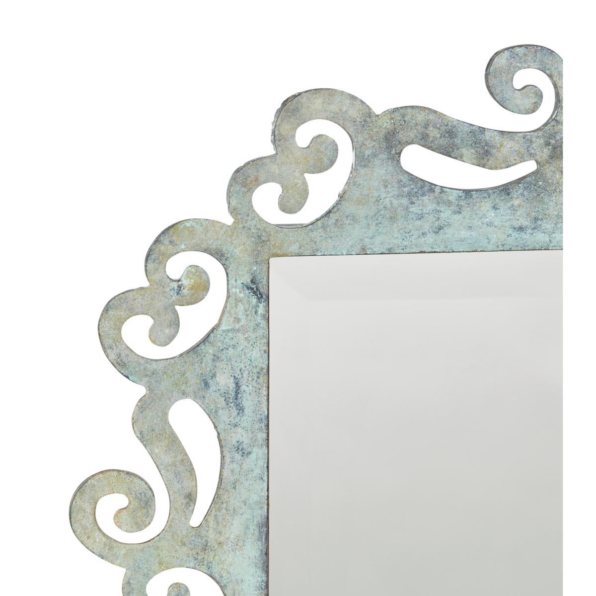 I love this mirror for its vintage-inspired design and the striking verdigris finish adds a touch of character and depth. It works particularly well in eclectic, boho, or coastal interiors, where its aged look can add an authentic, slightly weathered feel. For practical styling, try placing it above a console table or as a statement in a bedroom to reflect light and create a sense of space. To keep it looking its best, consider pairing it with other antiqued brass or distressed finishes to maintain a cohesive look. Its ornate frame adds visual interest without overwhelming the room, making it a versatile piece for adding personality to a variety of interiors.