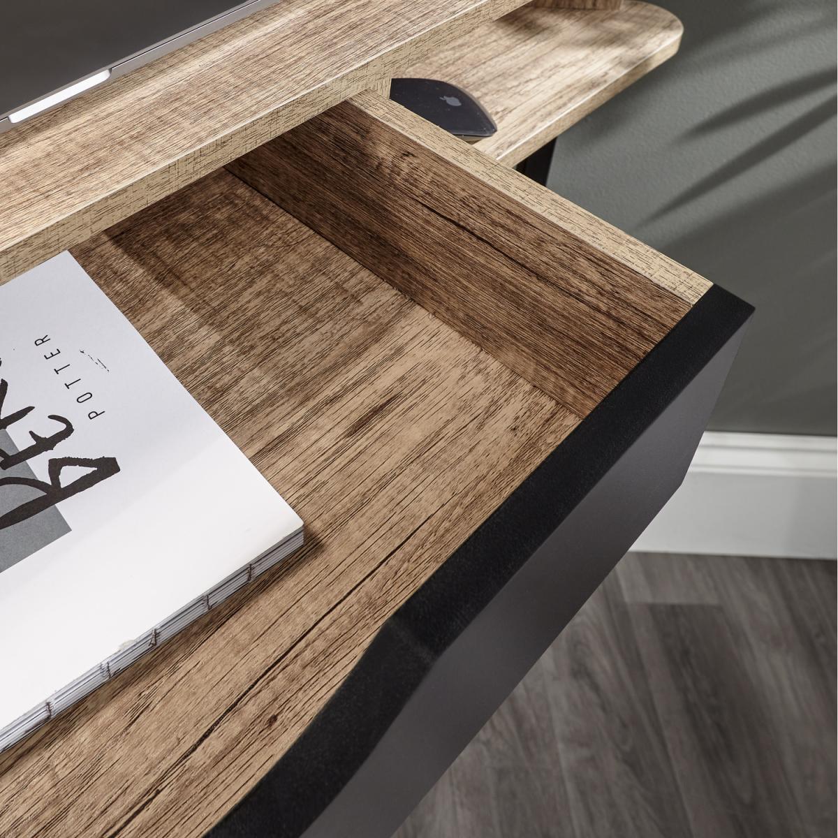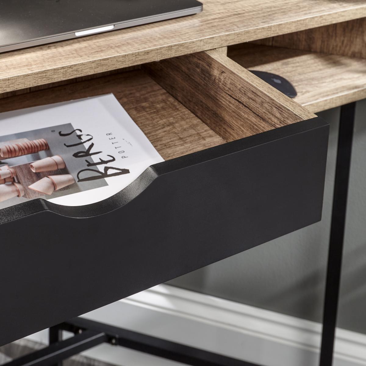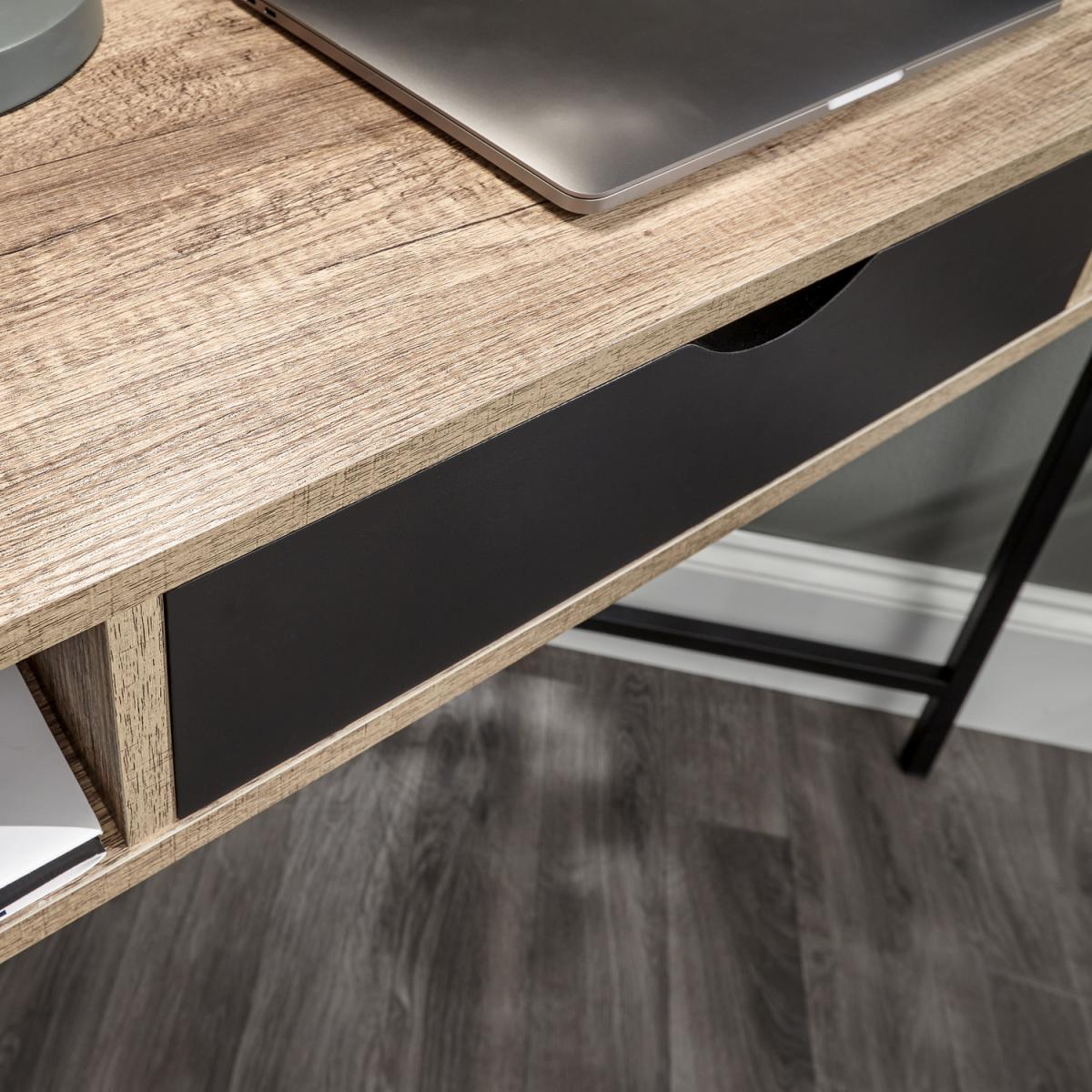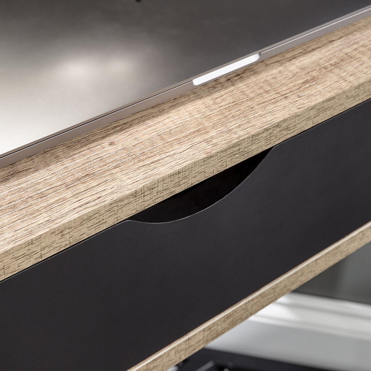 If you need a work-from-home option that does not impact your living space, this fabulous contemporary corner desk unit is a great choice. The compact design makes the most of an underused corner, incorporating a useful workspace, together with a storage section that's spacious enough to store most standard laptops and tablets plus media accessories. Available in a choice of classic light and dark oak-effect finish options with contrast drawers, or in highly durable concrete melamine for a minimalist look and feel that's uncompromisingly tough.