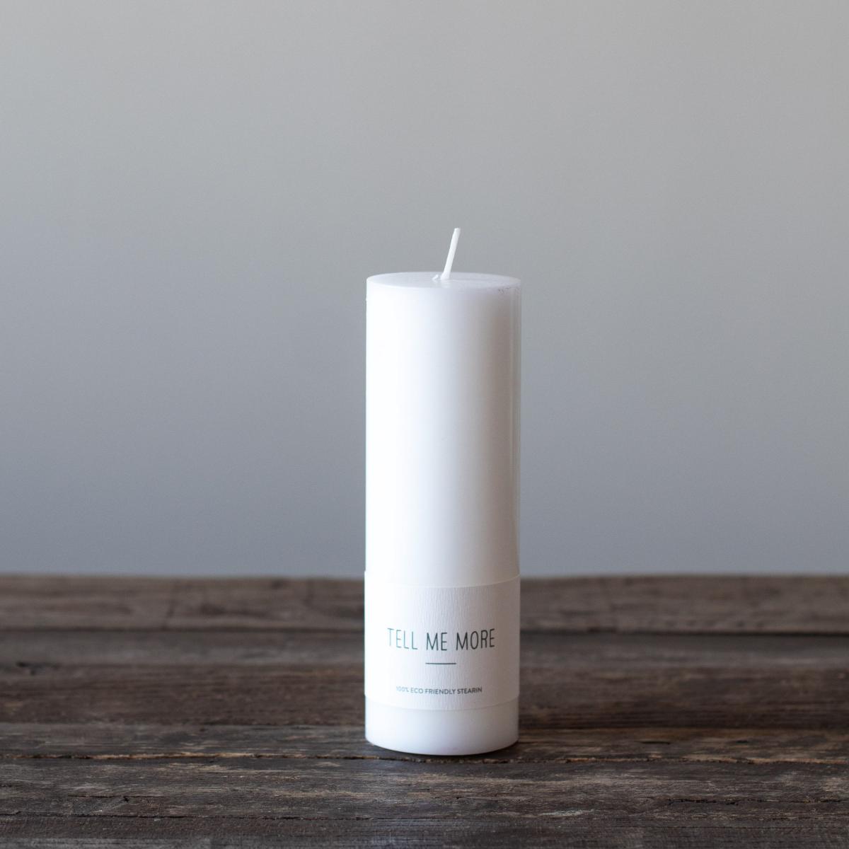 The Tell Me More wax candle L 15 cm from Swedish Tell Me More is marked with the Nordic Swan Ecolabel and made of 100% wax. The candle is stylish and looks lovely on its own or with a candlestick to add a lovely glow to your hall or living room table.