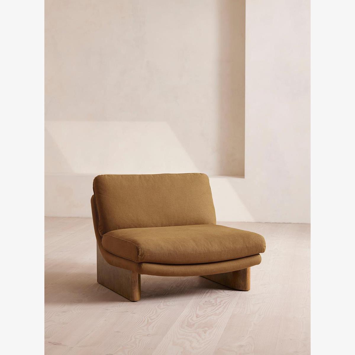 I’m a fan of the Tellis chair in ochre linen because its low-profile design and warm, muted hue slot easily into both modern and Scandi-inspired schemes. The softly rounded form adds a welcoming pause in an open-plan living room or reading nook, while the durable linen cover stands up well to everyday use. For styling, pair it with a natural oak side table and a neutral jute rug to keep things grounded. A wool throw in a subtle pattern or a velvet cushion in moss green will introduce texture without clashing. In smaller spaces, position it near a slim floor lamp to create a cosy corner, and in larger rooms use a pair to frame a central coffee table for balanced seating.