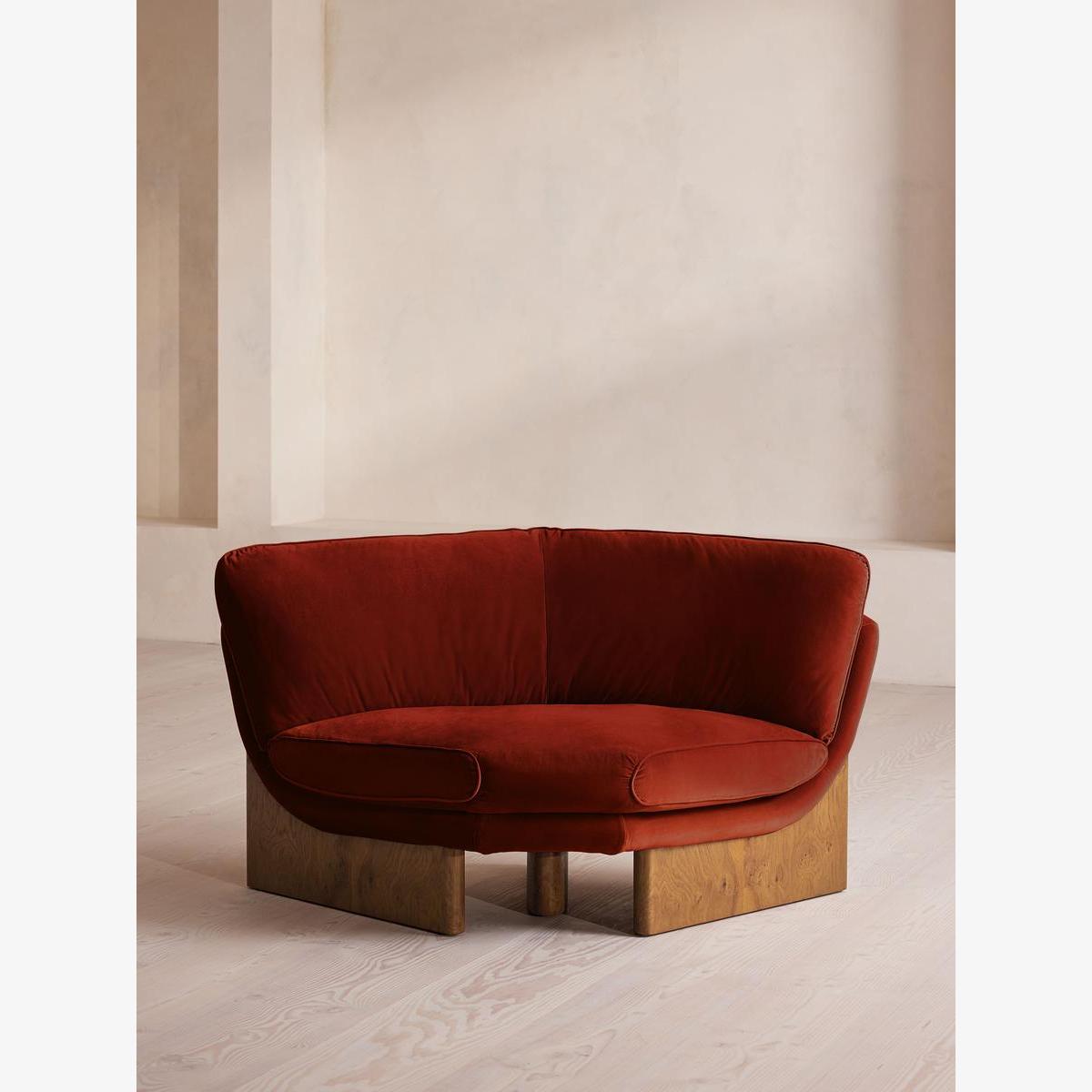 I love the Tellis Corner Module in velvet for its rich rust hue, which adds warmth and a contemporary touch to any space. Its compact, rounded shape makes it a versatile addition in both cosy living rooms and larger open-plan areas, especially when you want to create intimate seating arrangements. The velvet upholstery offers a luxe feel and pairs well with textured cushions or throws in neutral or contrasting colours for added visual interest. For styling tips, consider placing it against natural wood or stone accents to highlight its earthy tone, or position it near statement art pieces to elevate its visual impact. Practical and stylish, it works particularly well in modern or mid-century interiors where its soft curves can soften the overall aesthetic.