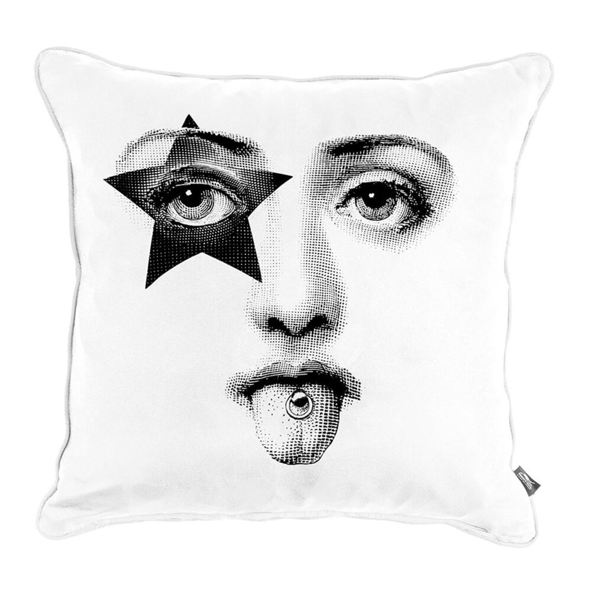 Eccentric design and Italian artistry comes together for this Tema e Variazioni cushion from Fornasetti. Featuring the face of Piero Fornasetti's long-time muse, Lina Cavalieri, it will make a bold statement wherever it's placed.