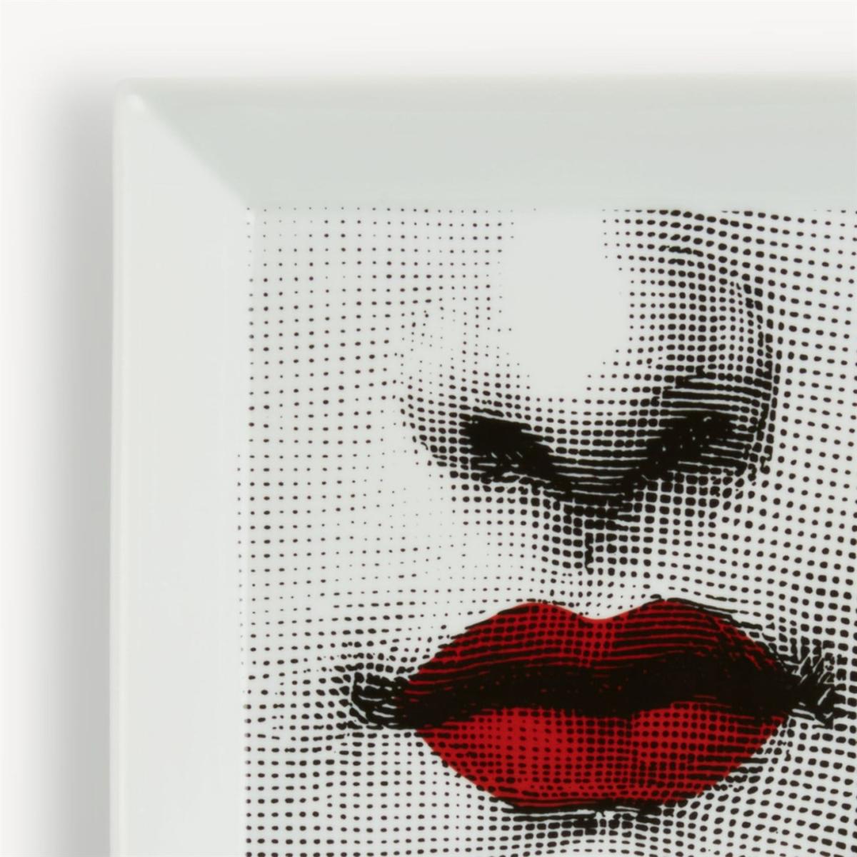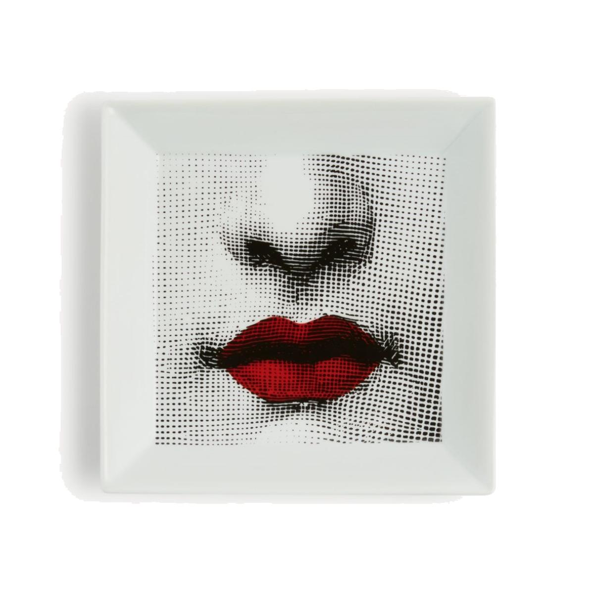 Give your interior walls the attention they deserve with the unmistakable style of the Tema e Variazioni collection from iconic brand Fornasetti. The classic black and white design of this signature series lights up with red in the form of this striking square wall plate depicting the sensual lips of favourite muse, opera singer Lina Cavalieri. Perfect for anyone who wants to impress with their décor or as a special gift.