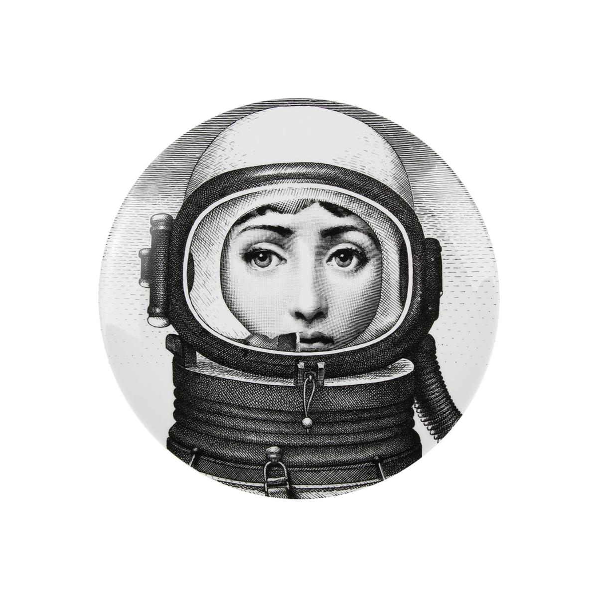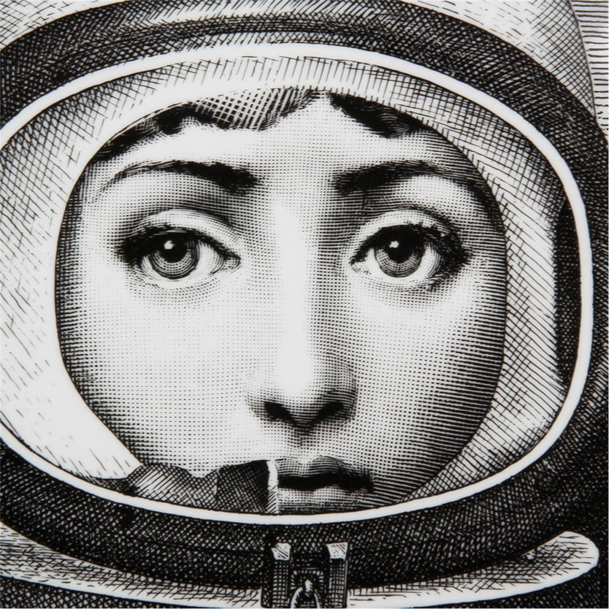 Adorn your interior walls in ultimate luxury with this stunning, handcrafted Tema e Variazioni porcelain wall plate from Fornasetti. This indulgent plate features the gorgeous face of Piero Fornasetti's favourite subject, opera singer Lina Cavalieri, in contrasting tones. A perfect decorative piece to complement any room, this iconic design is an ideal gift idea for any collector, or addition to your own home.