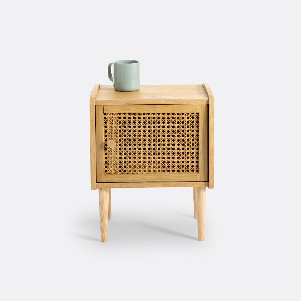 Be seduced by its curves and trendy vintage spirit. The Tempa bedside table brings its chic touch to the bedroom. Tempa Bedside Table with 1 Rattan Door