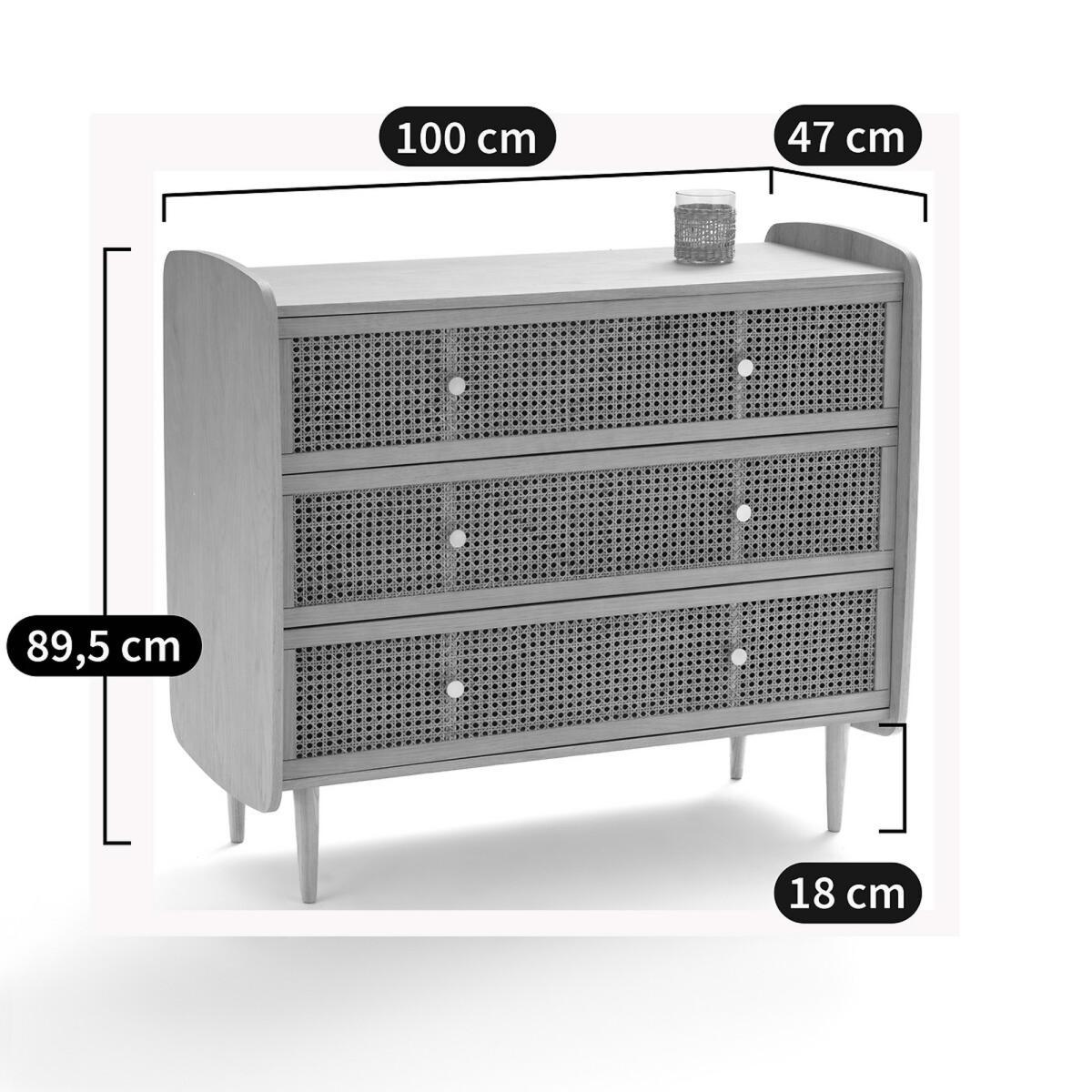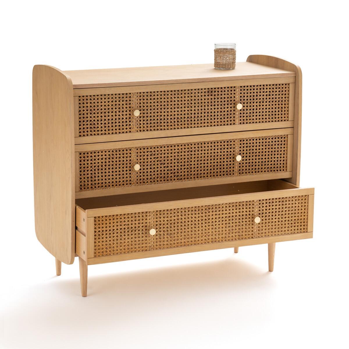 The Tempa chest of 3 drawers. You will love the natural feel of the combination of wood and rattan cane in this chest of drawers. It will bring a retro chic touch to your room.