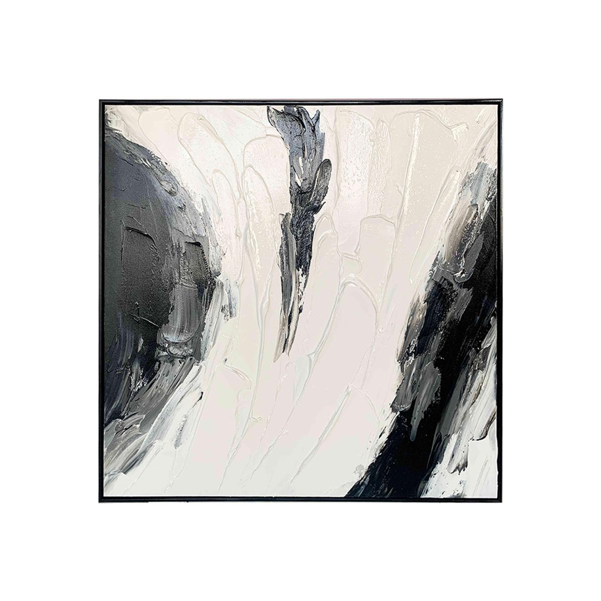 If you’re a fan of modern art, this oil painting is for you. Richly textured and displaying bold brushstrokes, it makes an impact on any wall. Why you'll love it This stunning framed canvas is focused on textural depth. Modern abstract style. Dramatic and bold with competing swathes of oil paint in grey and white. Slim contemporary frame. Large and square, this piece is perfect for a feature wall. Made to order in the UK. This framed canvas is part of the Furniture Village home accessories collection. What you need to know Do not use wire or string to hang. Hanging instructions supplied. Indoor use only. Dimensions Height: 100 cm (408 in). Depth: 4 cm (2 in). Width: 100 cm (40 in).