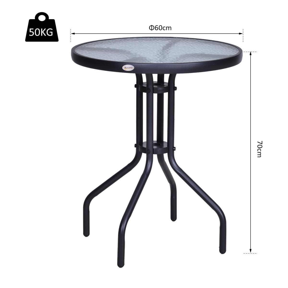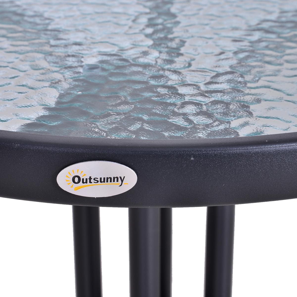 This Outsunny garden table is a great addition to your outdoor living space. Made from a metal frame with a tempered glass top. There is a plastic collar to ensure the table stays stable and firm throughout the year. The table is lightweight making it easier to move if required, a great addition to any outdoor living space.