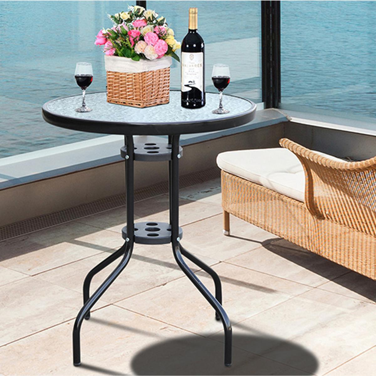 I’d pair this glass-top bistro table with sleek, modern seating or simple rattan chairs for a clean, unfussy look on a balcony or in a small garden corner. The black steel frame and clear glass top reflect light and won’t overwhelm tight spaces, making it ideal for urban patios, contemporary courtyards or even a minimalist conservatory. Styling tip: layer a woven placemat or small outdoor rug underneath, add a compact planter or lantern in the centre, and use stackable stools or folding chairs to keep the area flexible and easy to reconfigure. Maintenance is straightforward - just wipe the glass clean after use.