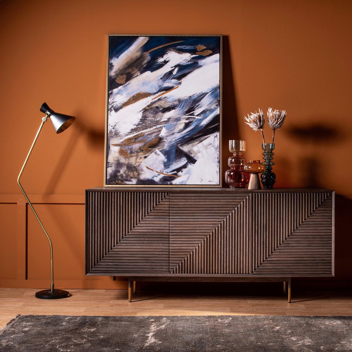 Design. Ultra-modern and glamorous, the Tempest Framed Canvas. Is the perfect way to add art to your room. The flicks of navy blue, white and. Neutral. Against the gold foil embellishment and frame gives a luxurious and elegant tou. Ch. The ideal piece to add character to your feature wall.