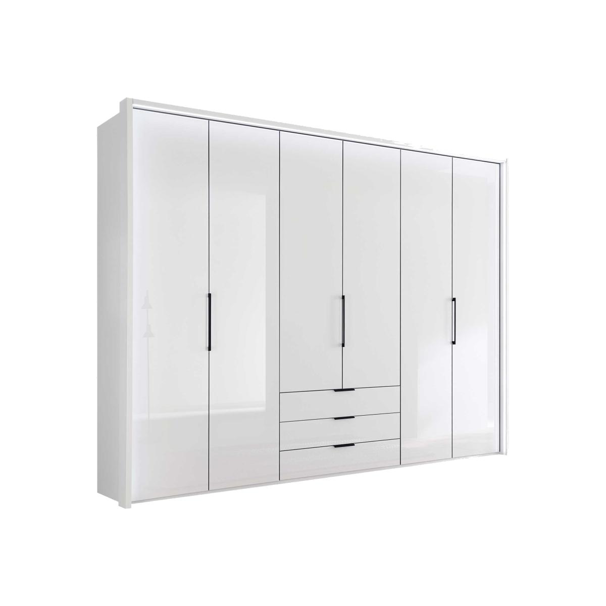 Redefine your bedroom with the White Glass 6 Door 3 Drawer 300cm Hinged Wardrobe with LED Lighting - a refined fusion of contemporary design and intelligent functionality. Showcasing elegant glass-fronted doors, three generously sized drawers, and ambient integrated LED illumination, this wardrobe delivers both visual appeal and everyday practicality. The meticulously planned interior includes shelving and a hanging rail within each compartment, offering versatile, organised storage. Space-efficient bi-fold doors glide open to provide unobstructed access. Expertly crafted from premium materials, this statement piece is available in a curated selection of sophisticated finishes to seamlessly complement and elevate any interior aesthetic