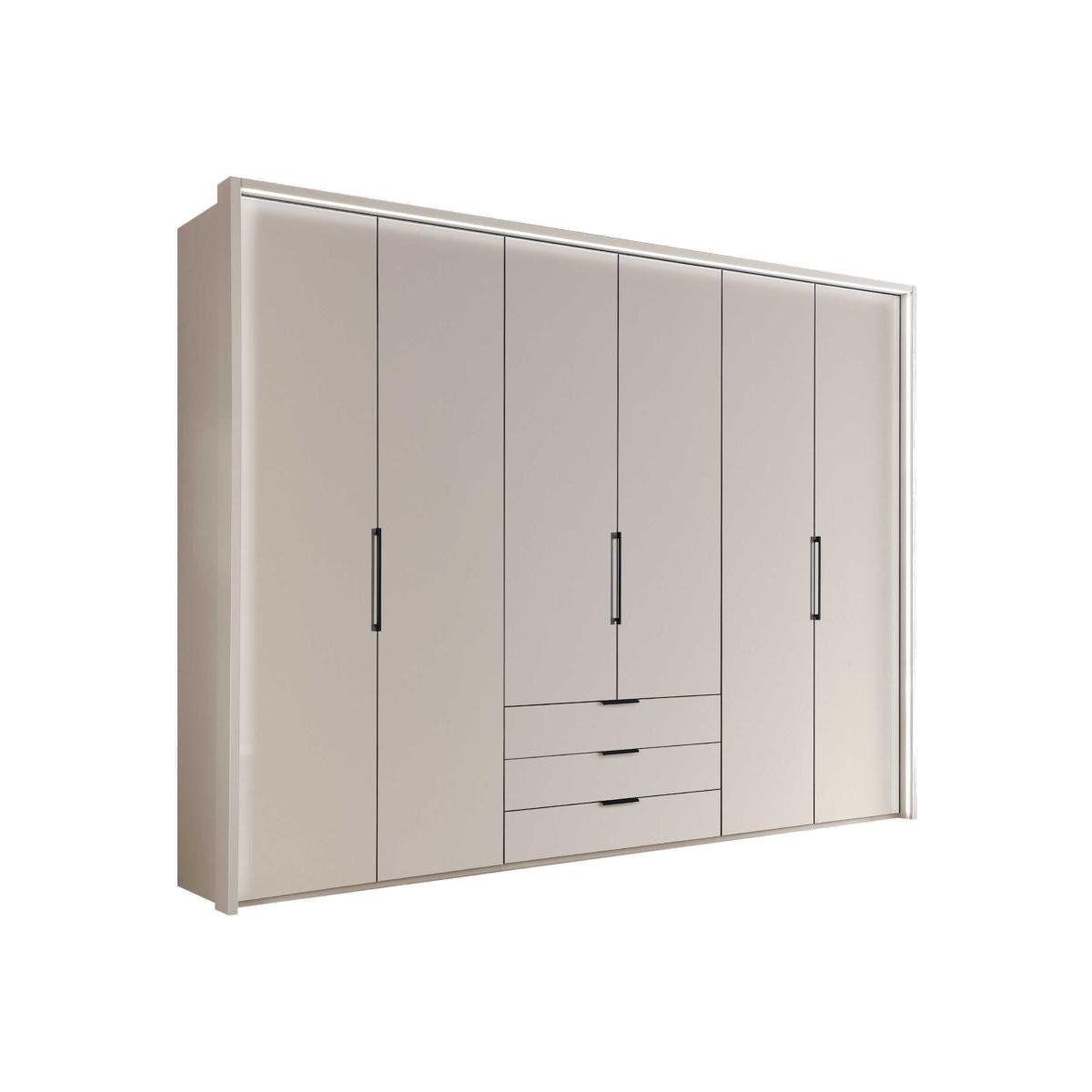 The Coloured Front 6 Door 3 Drawer 300cm Hinged Wardrobe seamlessly blends contemporary elegance with intelligent storage solutions. Crafted from durable engineered wood, its sleek coloured glass fronts exude sophistication while ensuring lasting quality. Designed for effortless organization, it features two spacious shelves and a clothes rail in each compartment, providing ample space for clothing and accessories. The smooth bi-fold doors optimize room layout, offering both convenience and style. Finished with sturdy metal handles, this wardrobe is a perfect balance of form and function, transforming any bedroom into a refined, clutter-free sanctuary