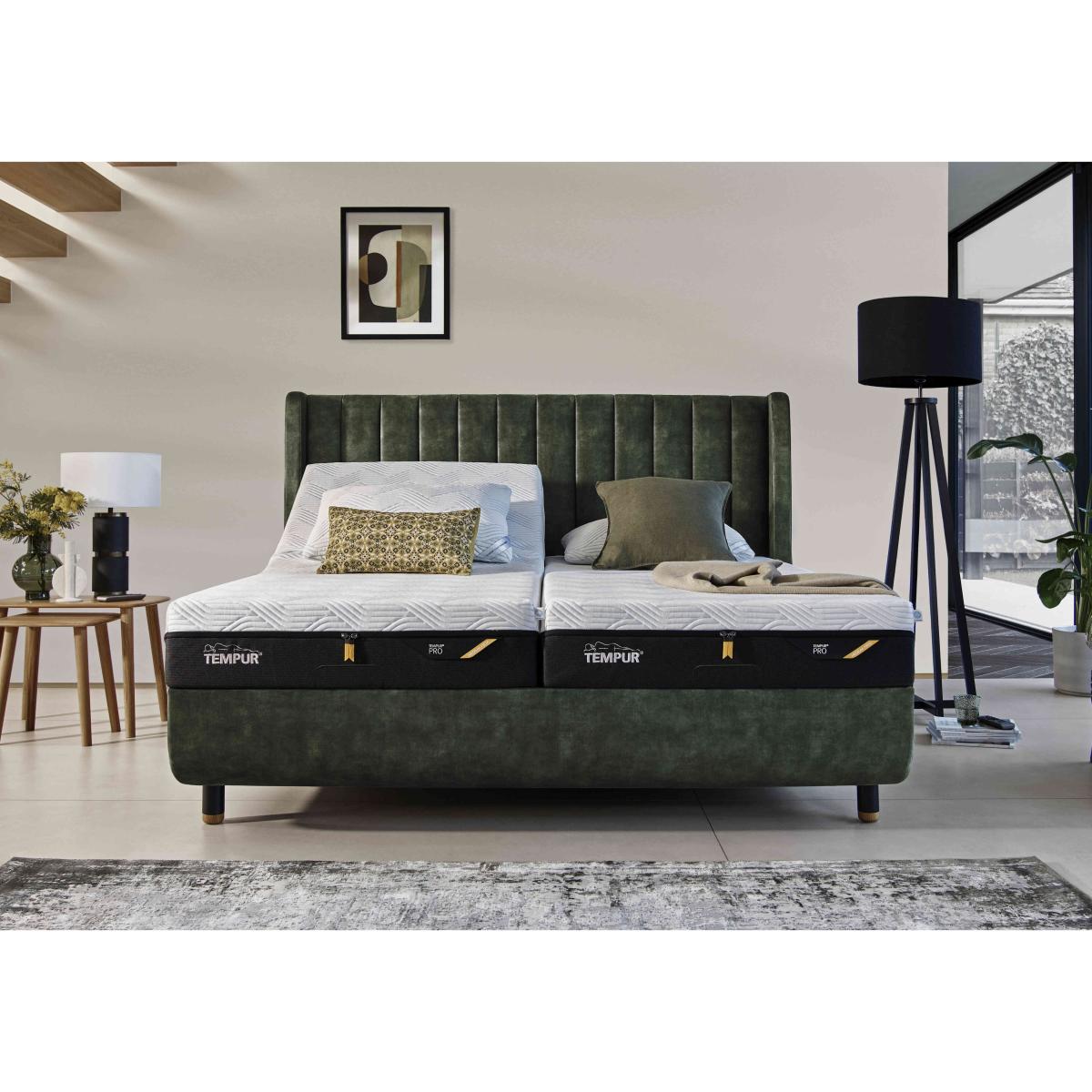 Where design and performance meet, you’ll find the innovative TEMPUR Arc™ range of bed frames, a collection that’s crafted to meet each and every need – for style, comfort, support, storage and, most importantly, for sleep like never before. Consisting of four bed bases, five leg designs and six headboard styles in a wide selection of luxurious upholstery fabrics, this modular collection has innovation at its heart. From a bed frame that’s AI-enabled to reduce snoring to one with reconfigurable discs that lets you create personalised support zones, the TEMPUR Arc™ bed frame collection represents a revolution in better sleep. And because these bed bases are designed and made by TEMPUR, you can count on exceptional craftsmanship, superb quality and sleep-enhancing attention to detail. Complete with Furniture Village-exclusive headboard, this AI-enabled bed frame responds to snoring by adjusting mattress elevation. Part of the modular TEMPUR Arc™ bed frame range. Why you'll love it This smart TEMPUR bed frame can actually help reduce sleep-disturbing snoring. Features advanced technology to help you experience your most restful sleep ever. Integrated Sleeptracker®-AI sensors detect micro-vibrations from snoring. Base responds by elevating your body by 12° – a position that’s proven to help reduce snoring. Also provides personalised insights and customised sleep coaching via an easy-to-use app. Bed frame has slender black and oak legs. Select a different leg style at no extra cost. Fully upholstered in a choice of beautiful fabrics. This bed frame comes complete with the Furniture Village-exclusive TEMPUR Lodret headboard. Contemporary style with winged sides and elegant fluting. Super-easy modular assembly system – no tools required. Available in super king size. The TEMPUR Arc™ Ergo Smart Base bed frame with Lodret headboard is part of the TEMPUR Arc™ range. What you need to know Mattress sold separately. Suitable for all standard mattresses. Sleeptracker®-AI sensors do not have microphones. Please be aware that choosing the button leg style will reduce this bed frame's height by 115 mm. Clean regularly using a soft brush or vacuum with the curtain attachment. Deal with any spills promptly. Professional cleaning advised for oil- and grease-based stains. Some fabrics can show wear on areas of more use or in direct sunlight. Shop the modular TEMPUR Arc™ range and create your perfect bed frame.