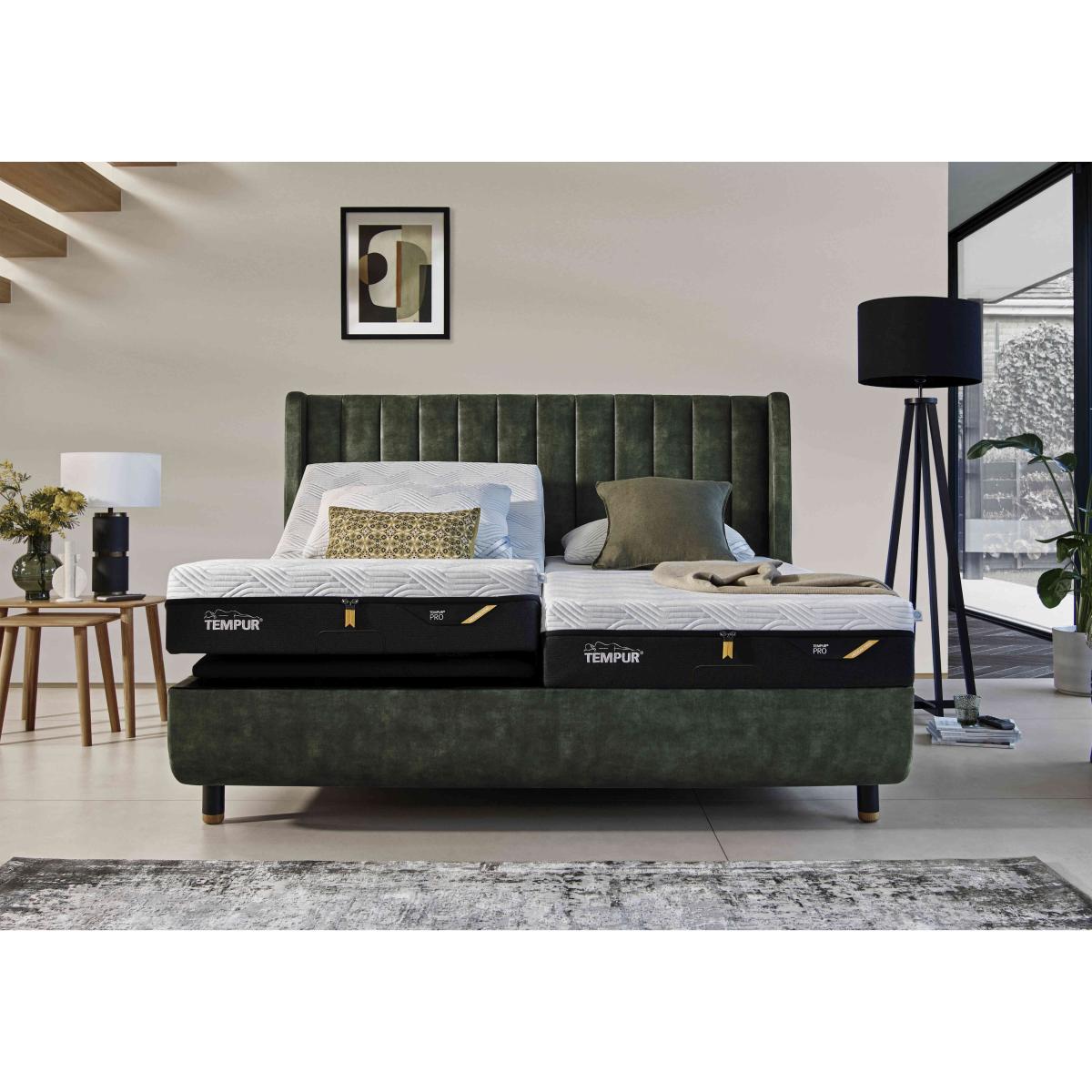 Where design and performance meet, you’ll find the innovative TEMPUR Arc™ range of bed frames, a collection that’s crafted to meet each and every need – for style, comfort, support, storage and, most importantly, for sleep like never before. Consisting of four bed bases, five leg designs and six headboard styles in a wide selection of luxurious upholstery fabrics, this modular collection has innovation at its heart. From a bed frame that’s AI-enabled to reduce snoring to one with reconfigurable discs that lets you create personalised support zones, the TEMPUR Arc™ bed frame collection represents a revolution in better sleep. And because these bed bases are designed and made by TEMPUR, you can count on exceptional craftsmanship, superb quality and sleep-enhancing attention to detail. Complete with Furniture Village-exclusive headboard, this AI-enabled bed frame responds to snoring by adjusting mattress elevation. Part of the modular TEMPUR Arc™ bed frame range. Why you'll love it This smart TEMPUR bed frame can actually help reduce sleep-disturbing snoring. Features advanced technology to help you experience your most restful sleep ever. Integrated Sleeptracker®-AI sensors detect micro-vibrations from snoring. Base responds by elevating your body by 12° – a position that’s proven to help reduce snoring. Also provides personalised insights and customised sleep coaching via an easy-to-use app. Bed frame has slender black and oak legs. Select a different leg style at no extra cost. Fully upholstered in a choice of beautiful fabrics. This bed frame comes complete with the Furniture Village-exclusive TEMPUR Lodret headboard. Contemporary style with winged sides and elegant fluting. Super-easy modular assembly system – no tools required. Available in super king size. The TEMPUR Arc™ Ergo Smart Base bed frame with Lodret headboard is part of the TEMPUR Arc™ range. What you need to know Mattress sold separately. Suitable for all standard mattresses. Sleeptracker®-AI sensors do not have microphones. Please be aware that choosing the button leg style will reduce this bed frame's height by 115 mm. Clean regularly using a soft brush or vacuum with the curtain attachment. Deal with any spills promptly. Professional cleaning advised for oil- and grease-based stains. Some fabrics can show wear on areas of more use or in direct sunlight. Shop the modular TEMPUR Arc™ range and create your perfect bed frame.