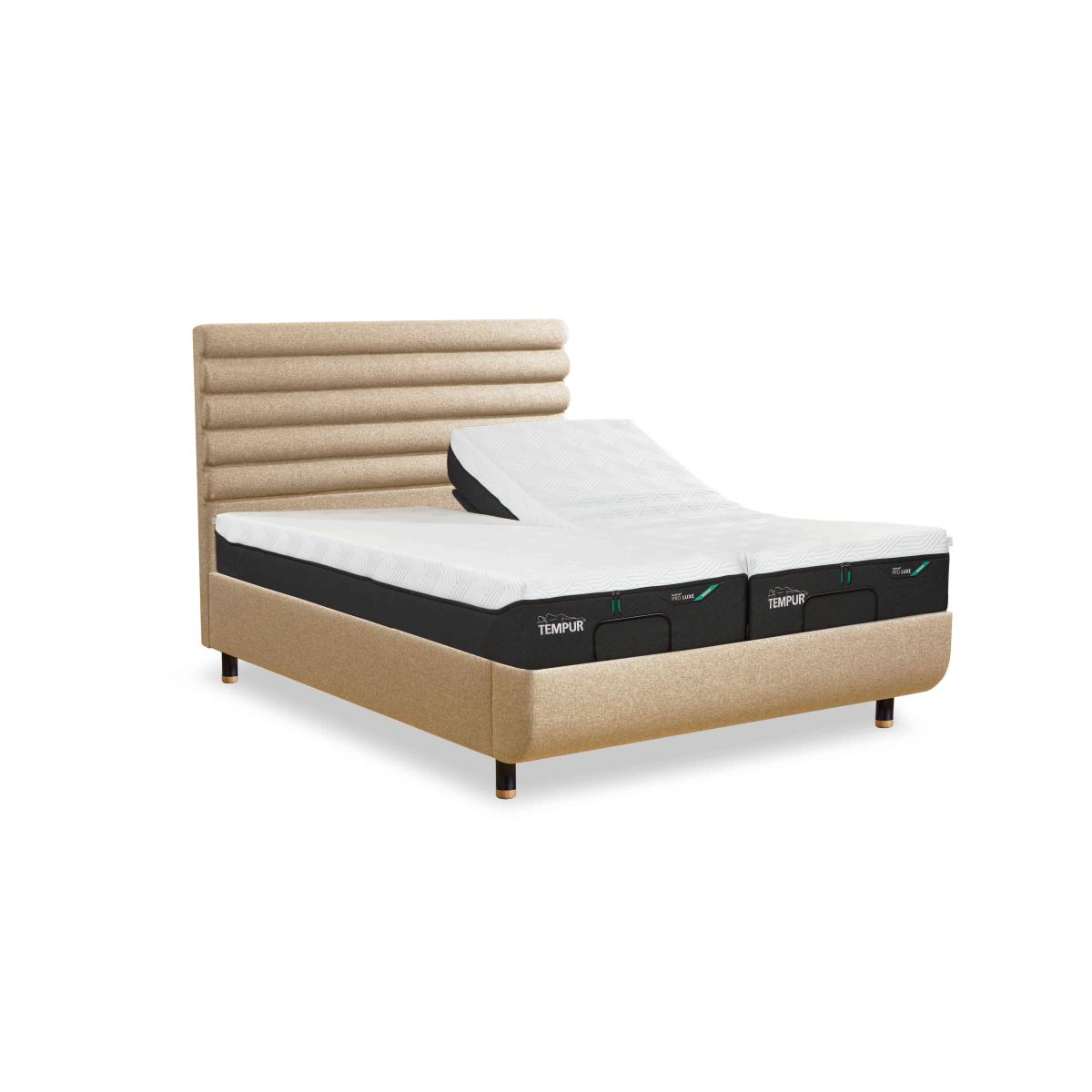 Where design and performance meet, you’ll find the innovative TEMPUR Arc™ range of bed frames, a collection that’s crafted to meet each and every need – for style, comfort, support, storage and, most importantly, for sleep like never before. Consisting of four bed bases, five leg designs and six headboard styles in a wide selection of luxurious upholstery fabrics, this modular collection has innovation at its heart. From a bed frame that’s AI-enabled to reduce snoring to one with reconfigurable discs that lets you create personalised support zones, the TEMPUR Arc™ bed frame collection represents a revolution in better sleep. And because these bed bases are designed and made by TEMPUR, you can count on exceptional craftsmanship, superb quality and sleep-enhancing attention to detail. This revolutionary (and very stylish) AI-enabled bed frame responds to snoring by adjusting the elevation of your mattress. Part of the modular TEMPUR Arc™ bed frame range. Why you'll love it This smart TEMPUR bed frame can actually help reduce sleep-disturbing snoring. Features advanced technology to help you experience your most restful sleep ever. Integrated Sleeptracker®-AI sensors detect micro-vibrations from snoring. Base responds by elevating your body by 12° – a position that’s proven to help reduce snoring. Also provides personalised insights and customised sleep coaching via an easy-to-use app. Bed frame has slender black and oak legs. Select a different leg style at no extra cost. Fully upholstered in a choice of beautiful fabrics. Includes the distinctively different TEMPUR Vectra headboard. Headboard’s space-age curves pay homage to TEMPUR’s unique NASA connection. Super-easy modular assembly system if you ever need to reassemble it – no tools required. Available in super king size. The TEMPUR Arc™ Ergo Smart Base bed frame with Vectra headboard is part of the TEMPUR Arc™ range. What you need to know Mattress sold separately. Suitable for all standard mattresses. Sleeptracker®-AI sensors do not have microphones. Please be aware that choosing the button leg style will reduce this bed frame's height by 115 mm. Clean regularly using a soft brush or vacuum with the curtain attachment. Deal with any spills promptly. Professional cleaning advised for oil- and grease-based stains. Some fabrics can show wear on areas of more use or in direct sunlight. Shop the modular TEMPUR Arc™ range and create your perfect bed frame.