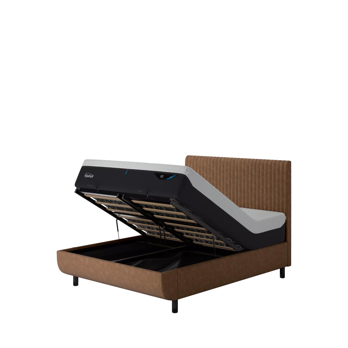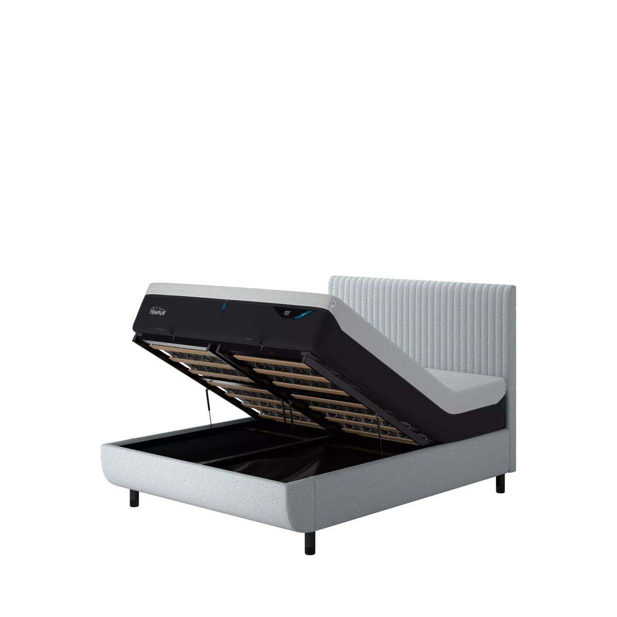 The Arc™ upholstered ottoman bed frame offers the best of storage and support. Created together with renowned design agency Studio Stockholm, its double-frame slat system works together with your TEMPUR® mattress to perfectly support your body while you sleep. High-quality steel tubing makes the bed frame reliably robust and durable, while the wide-opening ottoman hinges ensure a seamless and easy lift-up to access the helpful storage space inside. This base offers a more precise level of comfort and support. Discs in the bed frame flex with your body, adjusting to your individual shape and movement. These discs can also be arranged to suit individual needs, and you can completely customise your sleep surface with zones that feel softer or firmer depending on where you prefer extra support. Openings between the discs also allow air to flow through your mattress, keeping it cool and fresh. Featuring the Vertical headboard which has a distinctive linear pattern. Choose from a range of colours. Plus, assembly is straightforward thanks to a modular system which means you don't need any tools - just a small amount of fixing is required to attach the slatted section to the ottoman arm. This frame comes with Natural Ash legs, but if you want a different leg colour, visit one of our shops to place your order. Want to see it first? You may want to see and get a feel for the furniture in one of our shops before ordering. We'll be able to tell you where the range you'd like to view is on display.
