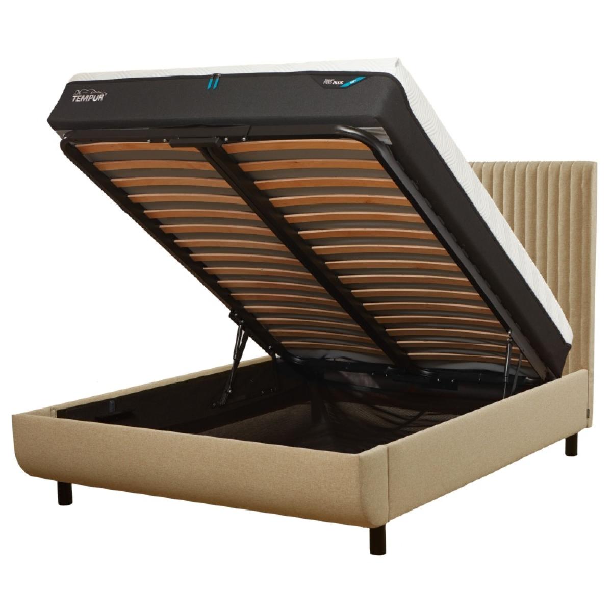 Elevate your sleep with a bed that’s truly yours – the TEMPUR Arc™. A series of beautifully-crafted bed bases, headboards, legs and colours – where design is perfectly in line with performance. Helping you create the perfect bed for you and your bedroom. A TEMPUR Arc™ bed is the perfect complement to any TEMPUR® mattress and our unique system of bed bases and support types has been carefully designed to optimise the performance of your mattress. Giving you the ultimate TEMPUR® sleep experience. TEMPUR ARC™ STORAGE - When bedroom space is in short supply, look no further than a TEMPUR Arc™ Storage bed base. Not only do they look luxurious and elegant, but they conceal a wealth of practical storage inside. Perfect for hiding away bed linens and other items. Simply lift up the frame and stow away to your heart’s content. STORAGE BED BASE - TEMPUR Arc™ Storage bed isn’t only designed for compact living. It’s made for outstanding comfort and support. The bed’s double-frame slat system works together with your TEMPUR® mattress to perfectly support your body while sleeping. High quality steel tubing makes the bed frame reliably robust and durable. While wide-opening ottoman hinges ensure comfortable lifting and easy access to stored items inside. For the ultimate combination of storage and support. EASY INSTALLATION - The TEMPUR Arc™ bed range makes the often-complex process of assembly simpler than ever. Our modular system of components ensures every bed is easy to design, move and assemble. In fact, no tools are needed to put the easy to assemble TEMPUR Arc™ bed together, meaning your bed can be brought to life in minutes. CUSTOMISATION - The beauty of a TEMPUR Arc™ bed is that it can be tailored to your needs. Thanks to our modular system of bed bases, support frames, headboards, legs, colours, and accessories, you can choose and create the perfect customisable bed for you. And if your style or needs change over time, so can your TEMPUR Arc™ bed. Giving you a flexible long-lasting personalised bed that evolves with you. KEY FEATURES: Customisable - choose your colour, headboard and leg style. Comes with buttoned legs as standard Easy to assemble and install Ottoman - Storage option designed for compact living 5 Year Warranty for Bed and Headboard 3 Year Warranty for Electrical Components DIMENSIONS: King - W 150cm x L 200cm x H 26.5cm. Super King - W1180cm x L 200cm x H 26.5cm. Please note the dimensions above are for the standard Button Leg option. All other leg options are 12cm and will need to be added to both the foot end and headboard height measurements. All screens vary in colour reproduction and whilst every effort has been made to display the colour as accurately as possible it is for guidance only.