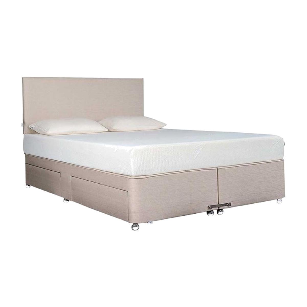 This Tempur Ardennes Divan Base is designed to complement the Tempur Mattress Range. It is a classic upholstered bed base unit, upholstered in a versatile neutral biscuit coloured fabric. A further range of beautifully textured plain fabrics are also available for your choosing. If extra storage is your concern, the Ardennes can solve all your problems with under bed full 4 drawer and continental 4 drawer options available, providing plently of room for storing lightweight essentials such as bed linen and towels. Complete the look by adding one of Tempur's stylish flush fitting headboards in matching materials to your order. Please Note:Imagery above shows the Ardennes 4 drawer divan option with plain headboard, both are not standard options and come at an additonal charge.