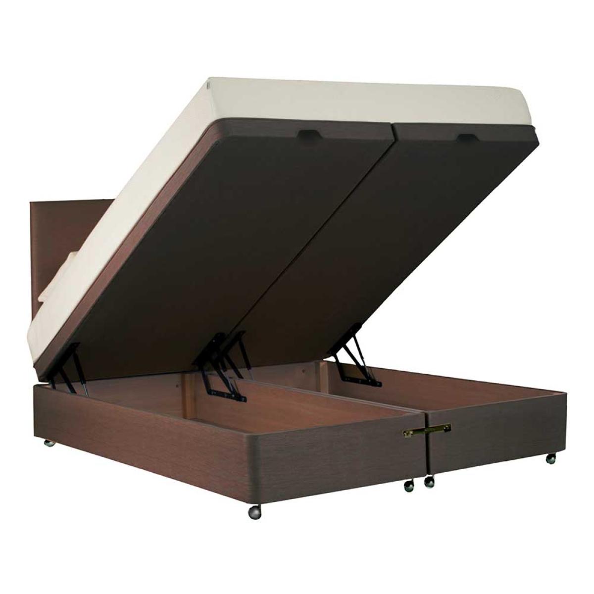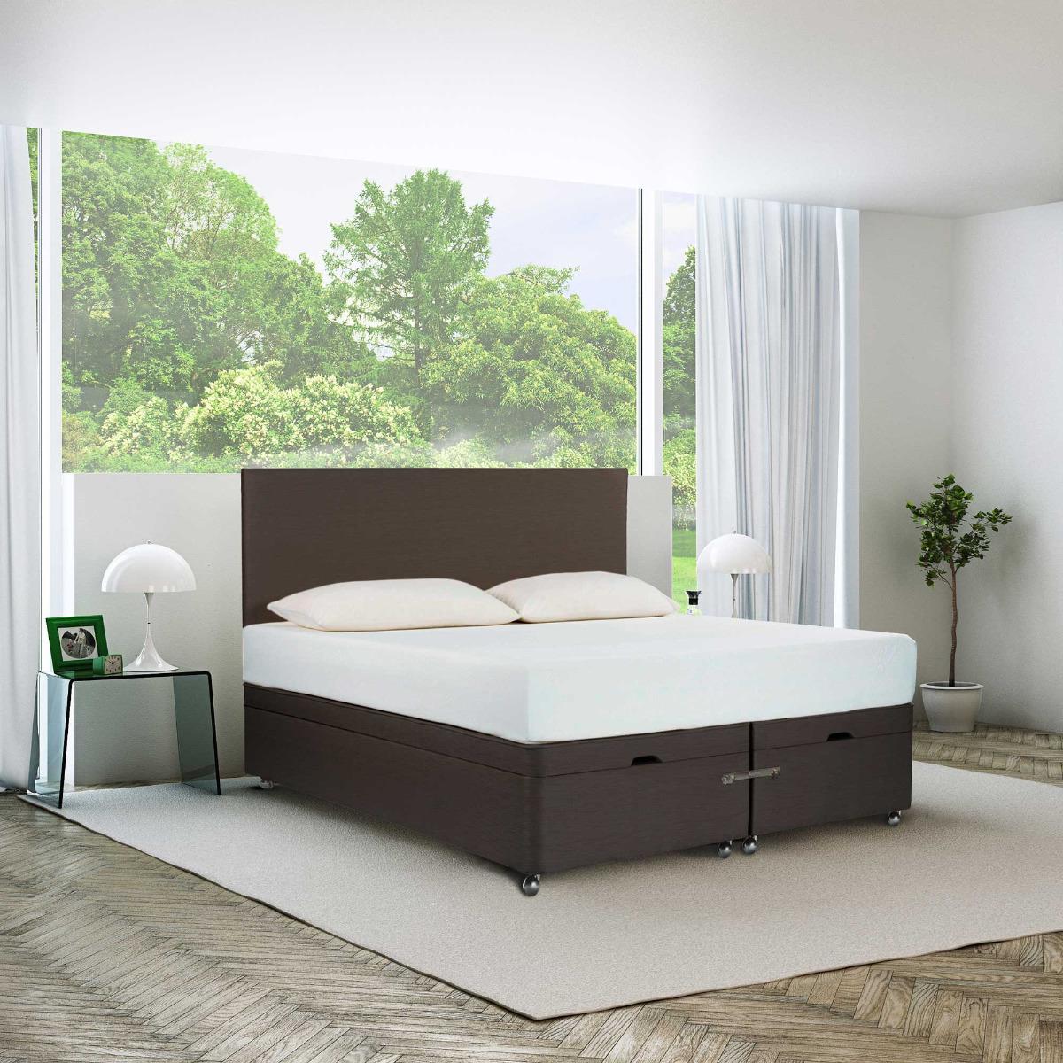 This Tempur Ardennes Divan Base is a practical addition to your home. With a gas lift mechanism, simply lift up the frame using the convenient slot handles to reveal its handy storage space beneath. A range of textured plain materials are available for your choosing, each one sure to beautifully coordinate with a wide range of decor schemes. The above image shows the Ardennes in a wonderfully versatile cobalt fabric. Complete the look by adding one of Tempur's stylish flush fitting headboards in matching materials to your order. Headboards are optional extras but fixtures and fittings for standard UK headboards are included. All Tempur divan bases are designed to complement the entire Tempur Mattress Range. Please note: The handles on the Ardennes have now been repositioned to sit on the upper-lid, whilst providing easier access to the storage space underneath. This was previously positioned on the lower section of the bed. Please Note: Imagery above shows the Ardennes ottoman with plain headboard, this is not standard and comes at an additonal charge.