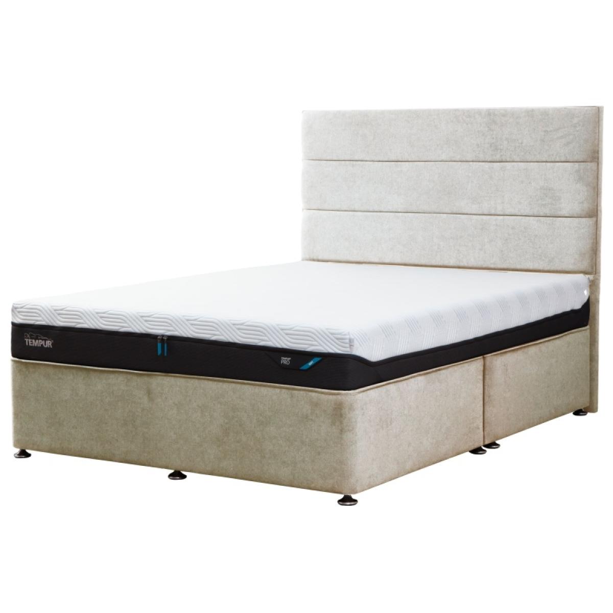 Note - Mattress and headboard pictured are not included but are available to purchase separately. The Tempur Buckingham bed base is the perfect partner for your new Tempur mattress! Crafted with meticulous attention to detail, this premium bed base features a platform top design to enhance the performance of your mattress, ensuring a restful night's sleep. The Buckingham is distinguished by its elegant upholstered finish and it's robust structure supports and extends the life of your mattress. Choose from a selection of base designs, including options with no drawer, continental drawers, and ottoman divans. You can also customise your Buckingham Divan with ease, selecting from four distinct headboard designs and 7 luxurious fabrics. Ideal for those seeking a blend of style, comfort, and functionality, the Tempur Buckingham Bed Base is a testament to Tempur's commitment to excellence in sleep innovation. KEY FEATURES: Platform Top - The base features a solid wooden top which is upholstered in fabric. This type of base will provide a supportive feel to the mattress. High-quality drawers made from hardwood timber and materials along with robust construction techniques to provide superior storage space. (Storage weight limit 15kg). Glides - Stylish silver glides support the divan base adding a contemporary, luxurious feel to any room. Available in a range of fabrics and colours. Made in the UK from FSC-certified timber. This base comes as a horizontally split base. DIMENSIONS: Single Size - W 90cm x L 190cm Double Size - W 135cm x L 190cm King Size - W 150cm x L 200cm Super King Size - W 180cm x L 200cm Base Height including glides - 38cm All screens vary in colour reproduction and whilst every effort has been made to display the colour as accurately as possible it is for guidance only.