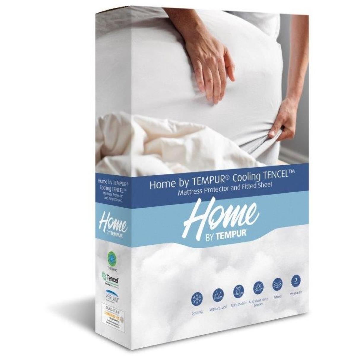A bedding essential created for the Home By TEMPUR® Collection to keep your TEMPUR® mattress clean, dry and fresh. Use a TEMPUR® Cooling Mattress Protector as an extra layer beneath your favourite bed linen, or as a bottom sheet itself.  Ultra-thin, its waterproof sleeping surface is breathable and acts as barrier against dust mites.  KEY FEATURES: 2-in-1 cooling mattress protector and fitted sheet Fully breathable and waterproof Innovative microcapsules keep you cool throughout the night Intelligent membrane encourages airflow  Anti-dust mite barrier maintains sleep hygiene Kind to your skin, as certified by OEKO-TEX® Machine washable at 60°C, tumble dry on low Fits mattresses up to 31cm deep. Rest easy with a 3-year guarantee
